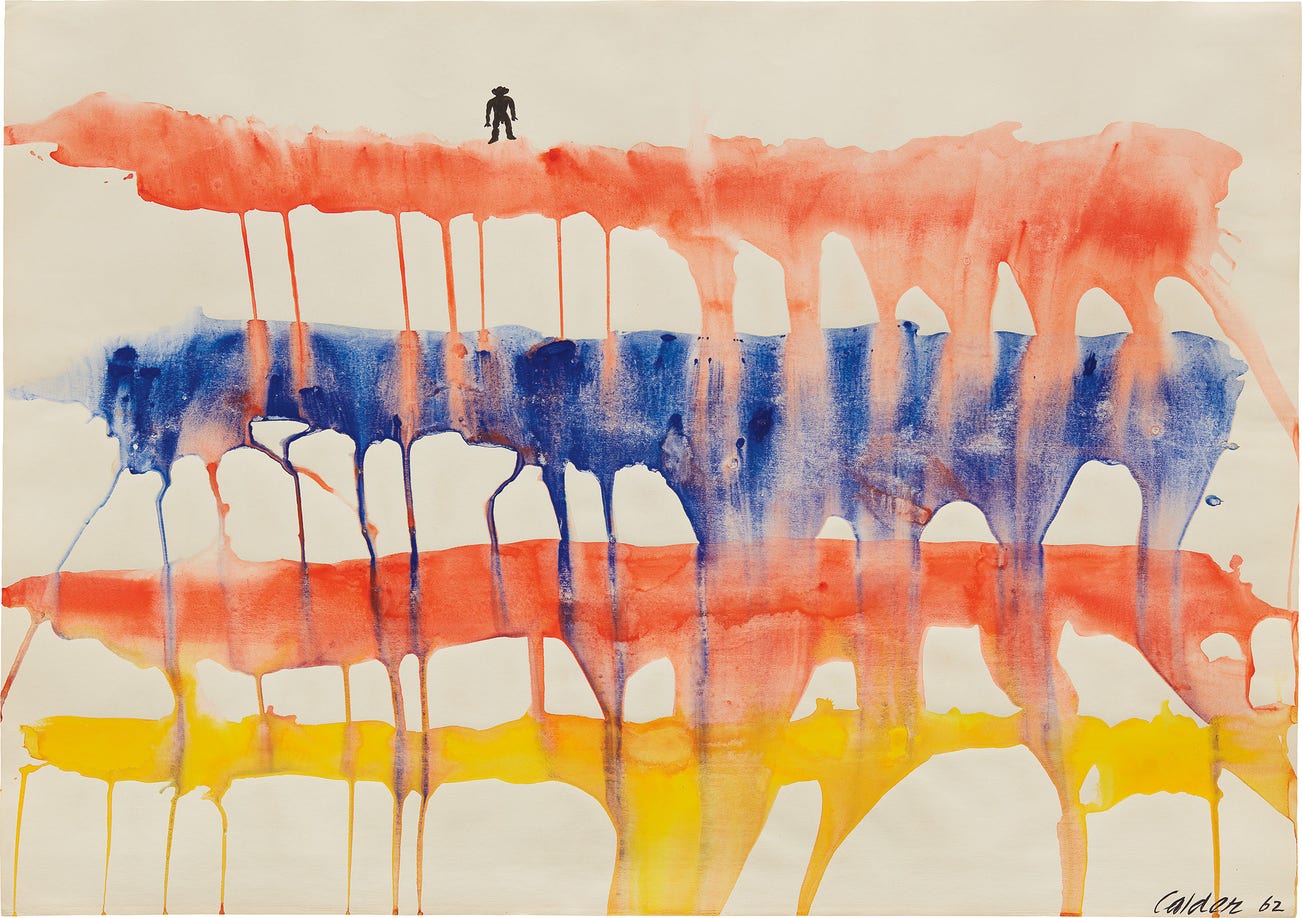 signed and dated "Calder 62" lower right; further titled "Pont du gard" on the reverse