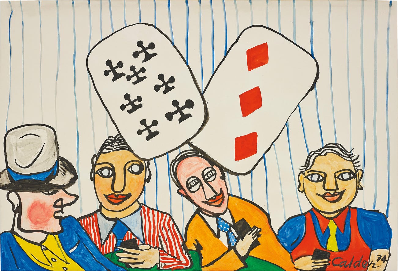 signed and dated 'Calder 74' lower right; further titled 'Le Melon' on the reverse