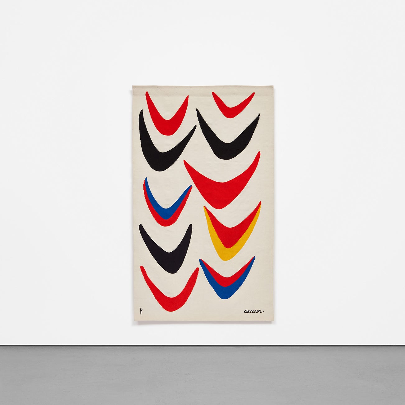 woven with the artist's last name "Calder" and the Les Ateliers Pinton's monogram lower edge; further woven with the number "5/6" on the reverse and with the Les Ateliers Pinton label affixed to the reverse