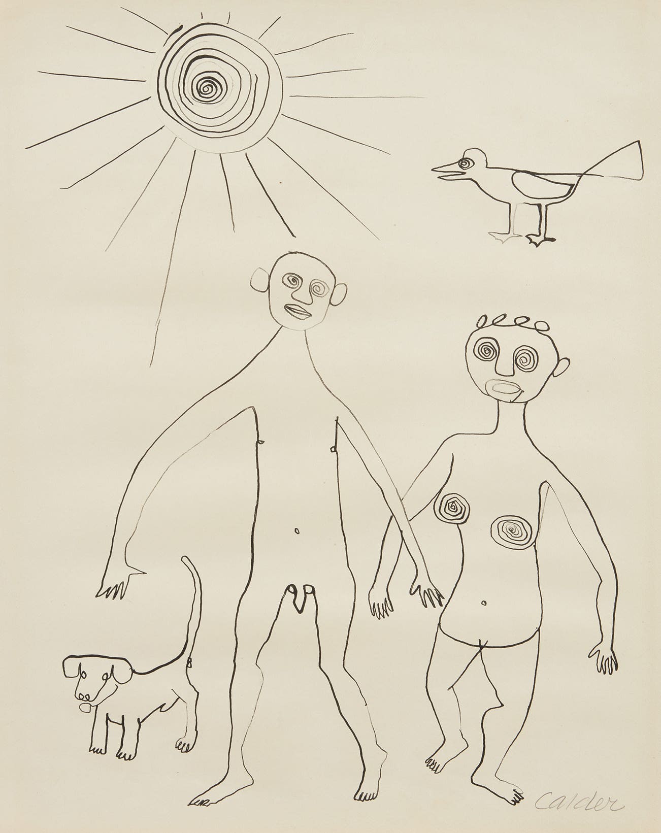 Untitled [Nude Couple with Dog and Bird]