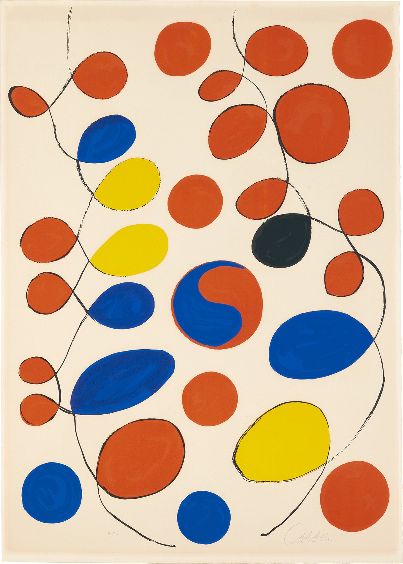 American | B. 1898 D. 1976Alexander Calder worked as an abstract sculptor and has been commonly referred to as the creator of the mobile. He employed industrious materials of wire and metal and transformed them into delicate geometric shapes that respond to the wind or float in air. Born into a family of sculptors, Calder created art from childhood and moved to Paris in 1926, where he became a pioneer of the international avant-garde. In addition to his mobiles, Calder produced an array of public constructions worldwide as well as drawings and paintings that feature the same brand of abstraction. Calder was born in Lawnton, Pennsylvania.