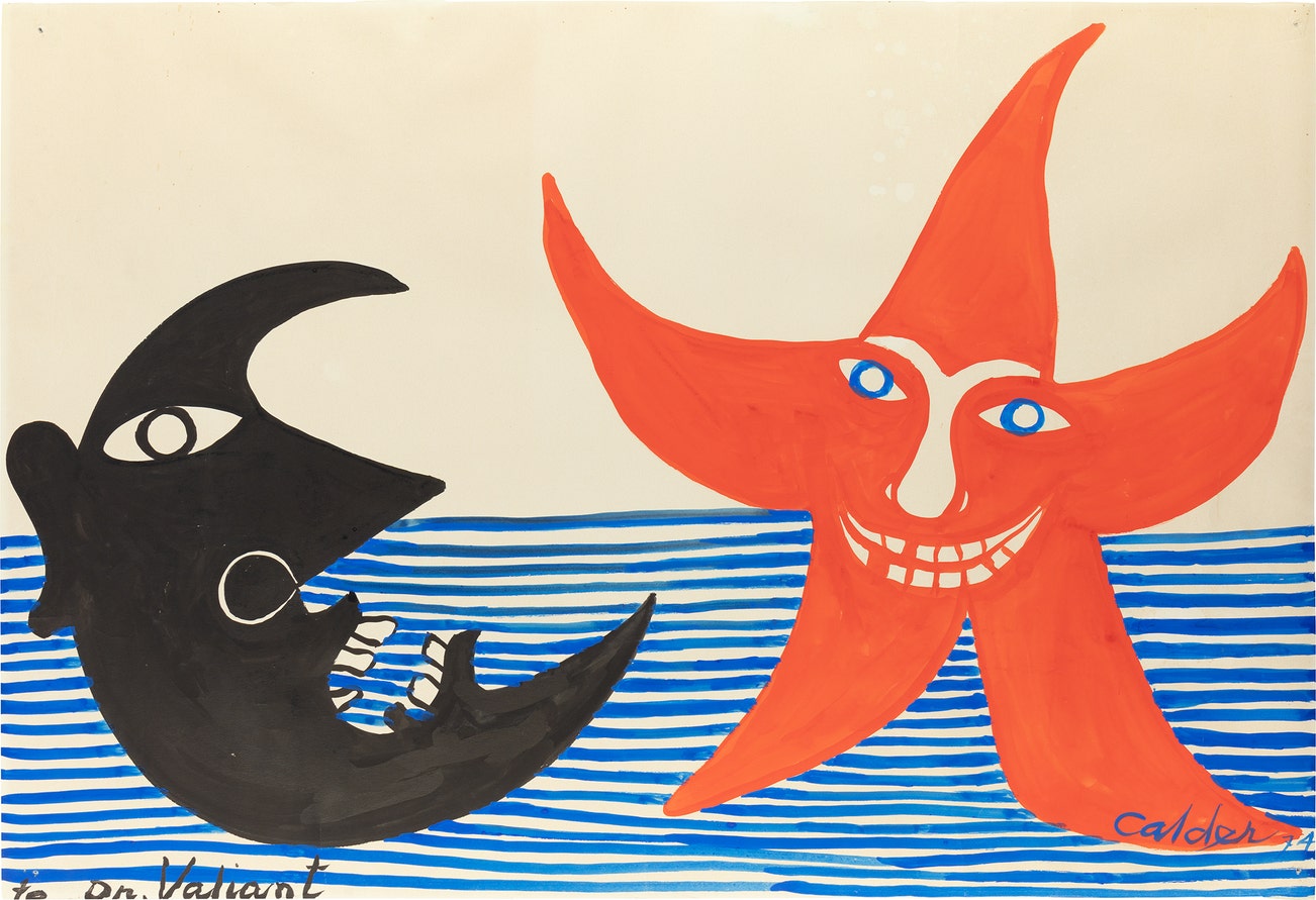 signed and dated “Calder 74” lower right; dedicated “to Dr. Valiant” lower left