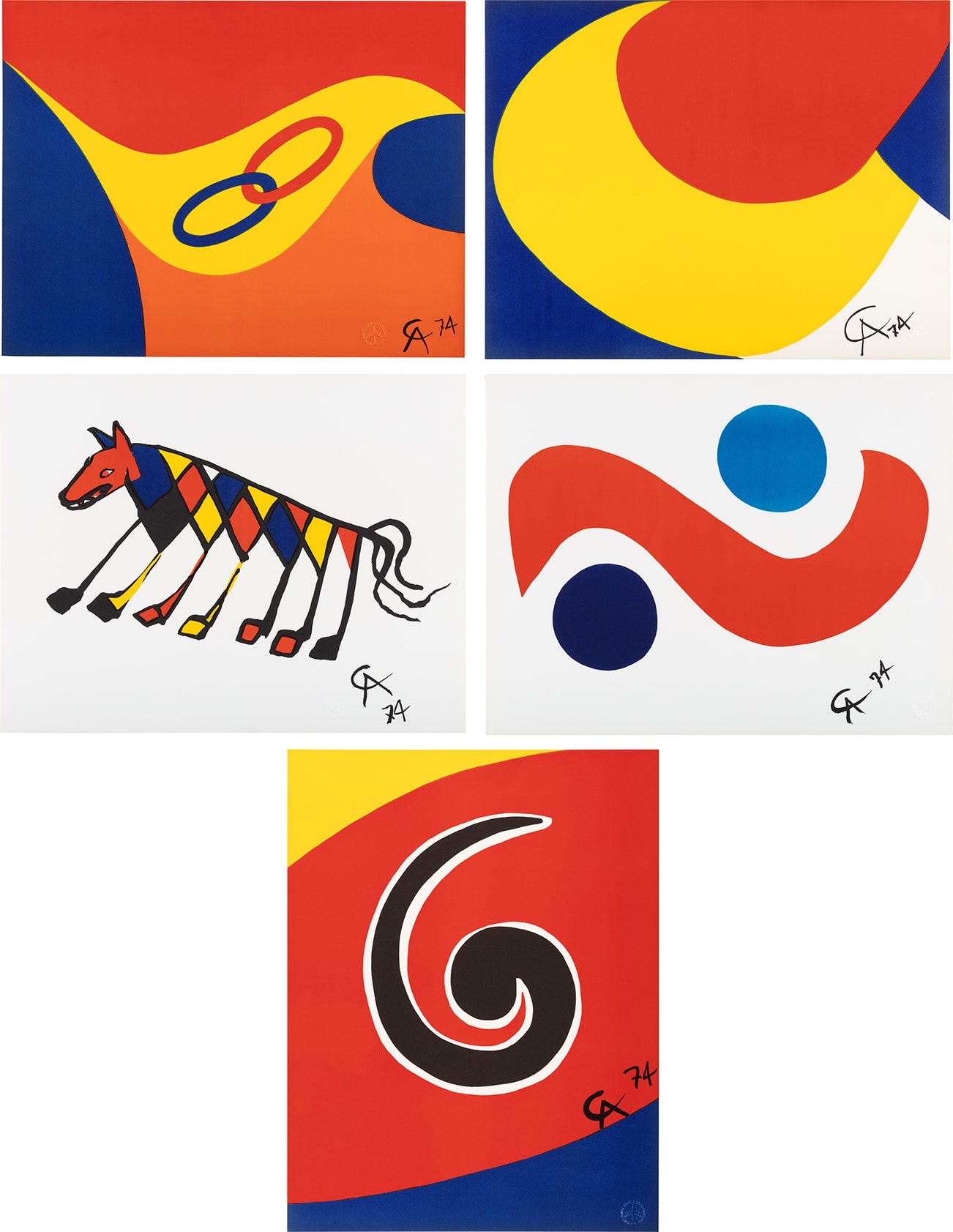 Five lithographs in colors, on Arches paper, the full sheets.