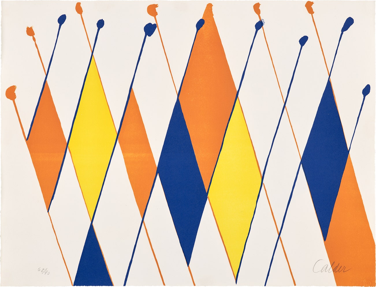American | B. 1898 D. 1976Alexander Calder worked as an abstract sculptor and has been commonly referred to as the creator of the mobile. He employed industrious materials of wire and metal and transformed them into delicate geometric shapes that respond to the wind or float in air. Born into a family of sculptors, Calder created art from childhood and moved to Paris in 1926, where he became a pioneer of the international avant-garde. In addition to his mobiles, Calder produced an array of public constructions worldwide as well as drawings and paintings that feature the same brand of abstraction. Calder was born in Lawnton, Pennsylvania.