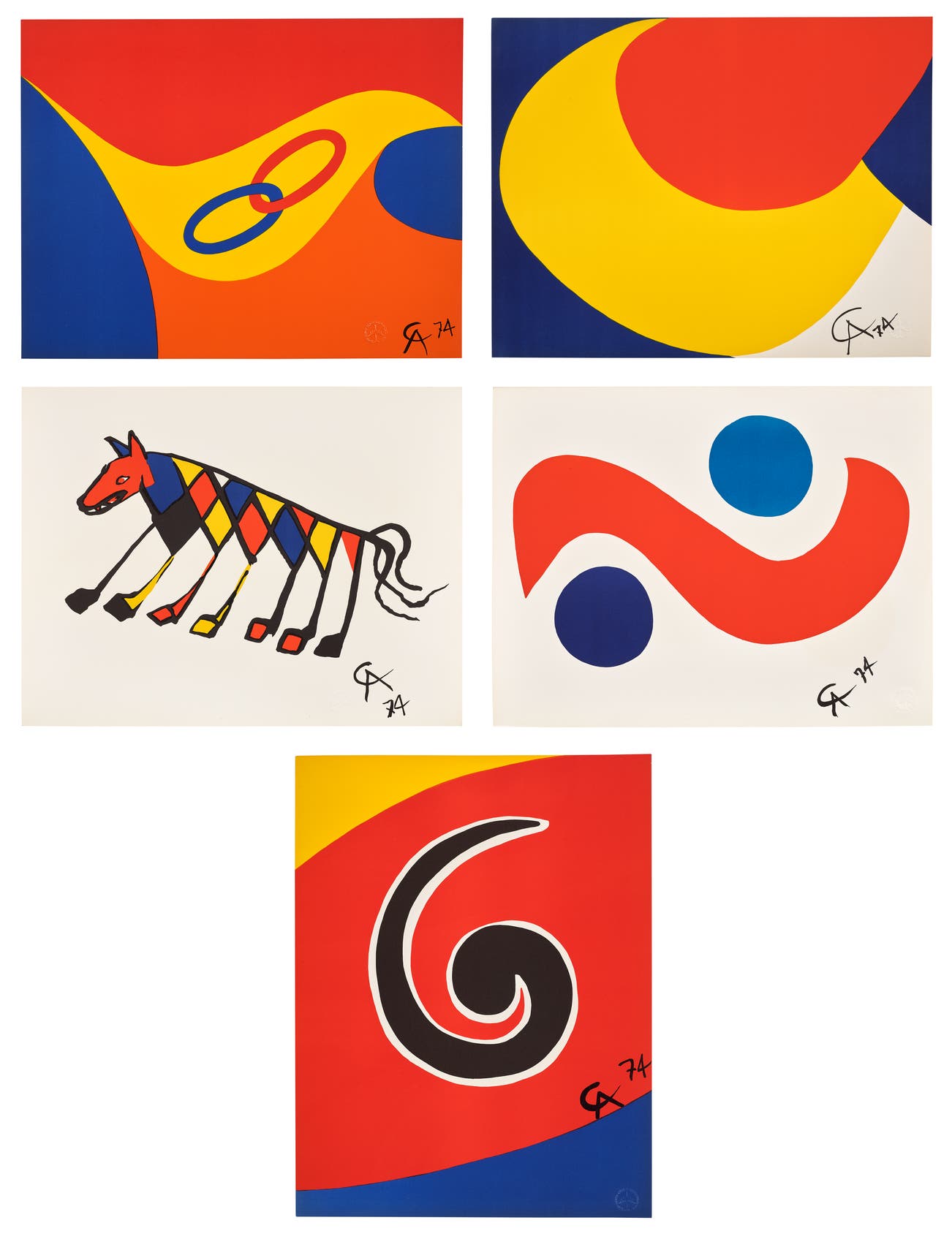 Five lithographs in colors, on Arches paper, with full margins and the full sheets.