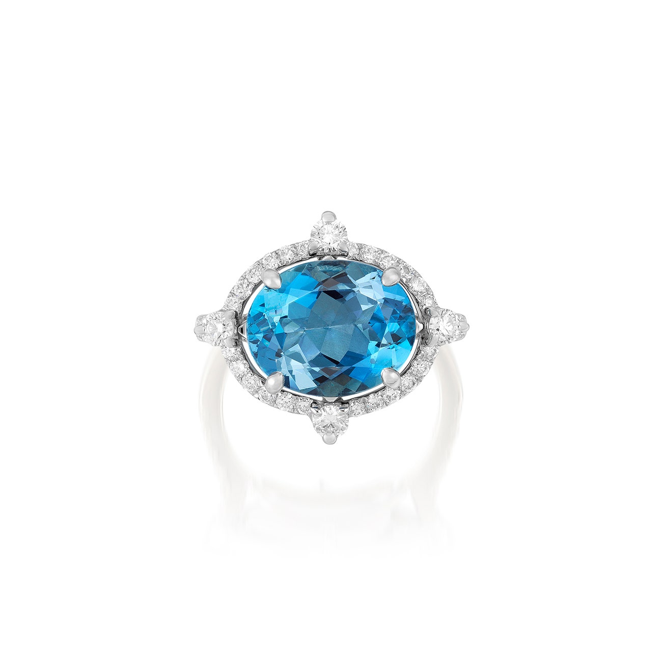 Set with an oval aquamarine weighing 4.62 carats, to the brilliant-cut diamond surround and shoulders, mounted in platinum, signed Laut for Alexander Laut, numbered, size 6½.