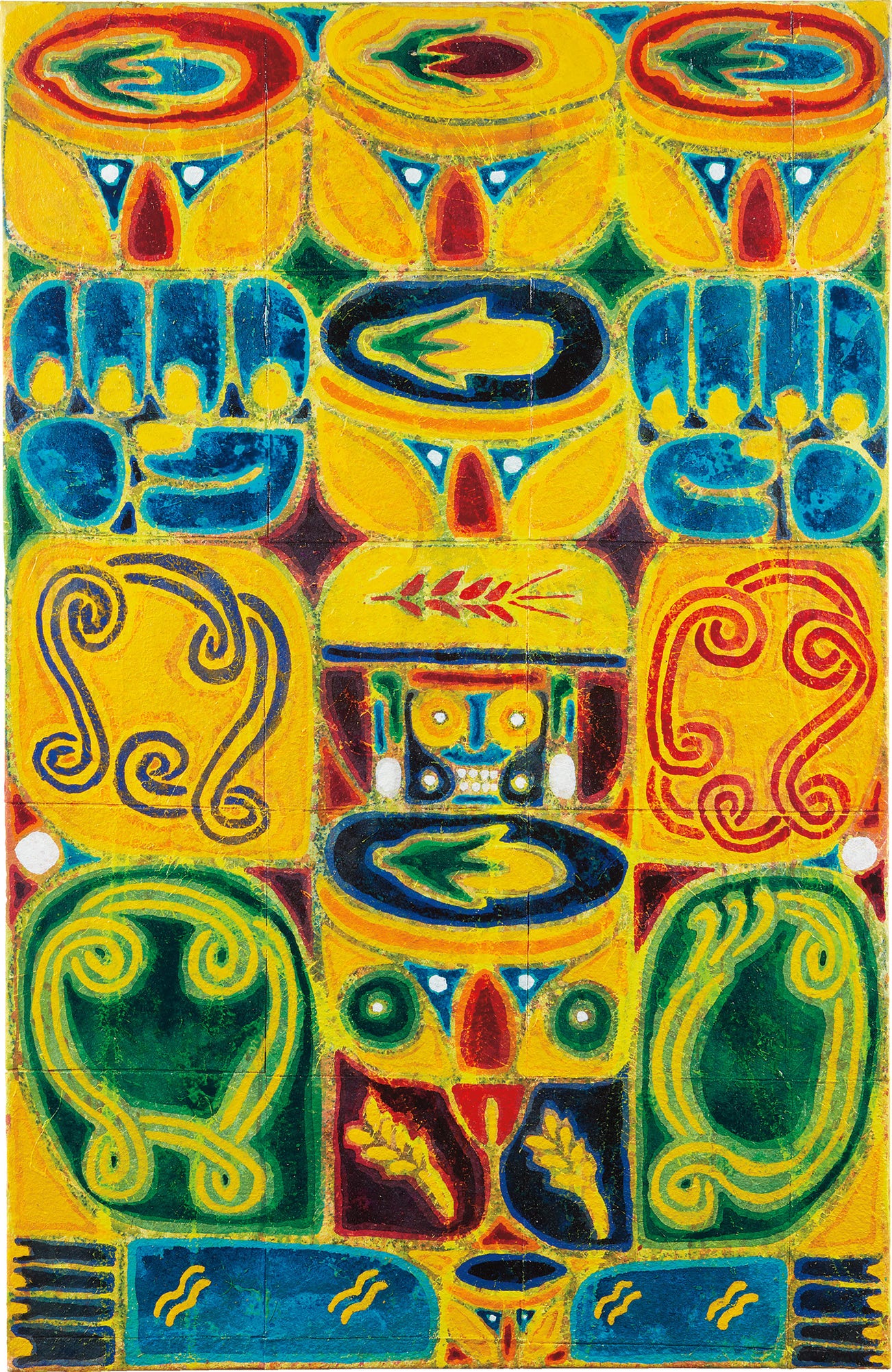 acrylic, watercolor crayon and felt on canvas