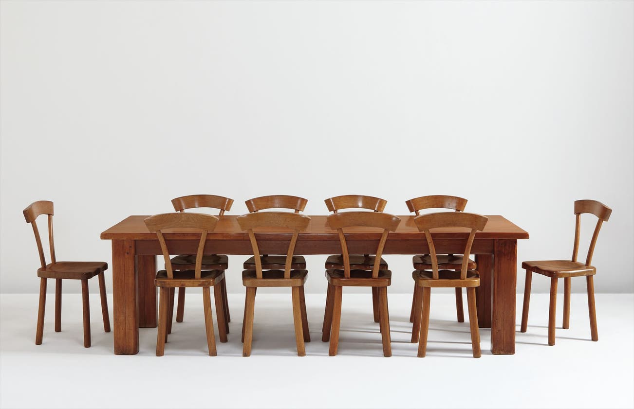 Also a writer and musician, Noll began his career as a wood carver in the commercial environment of department stores, and quickly attracted attention from established designers of the period such as Paul Poiret, who commissioned him to design decorative objects and household goods. It was not until the post-war years that Noll's desire began to create large simple furniture forms. Jean-Elie and Passebon write of Noll’s desire to create “furniture sculptures.” The present lot is the embodiment of this goal, in the sculptural presence of the table’s massive form.