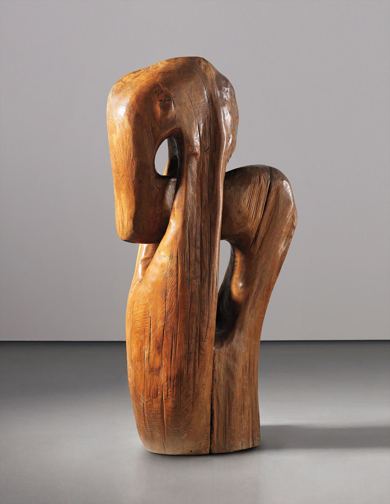 It is if as Michelangelo once said, ‘every block of stone has a statue inside it and it is the task of the sculptor to discover it’, Noll also saw it as his mission to unlock the sculpture in a block of wood. Tracing this connection between artist and material, Olivier Jean-Elie and Pierre Passebon write that ‘it was the sculpture’s nature that acted as model, and the decision to sculpt derived directly from the choice of a particular wood’. (Alexandre Noll, Paris, 1999, p. 70) Ultimately, Noll’s sculptures provoke a response based as much on awe of human skill as nature’s innate artistry.