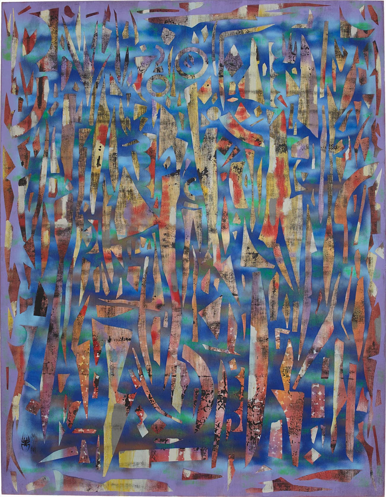 glue emulsion, acrylic paint, spray paint, enamel varnish on linen