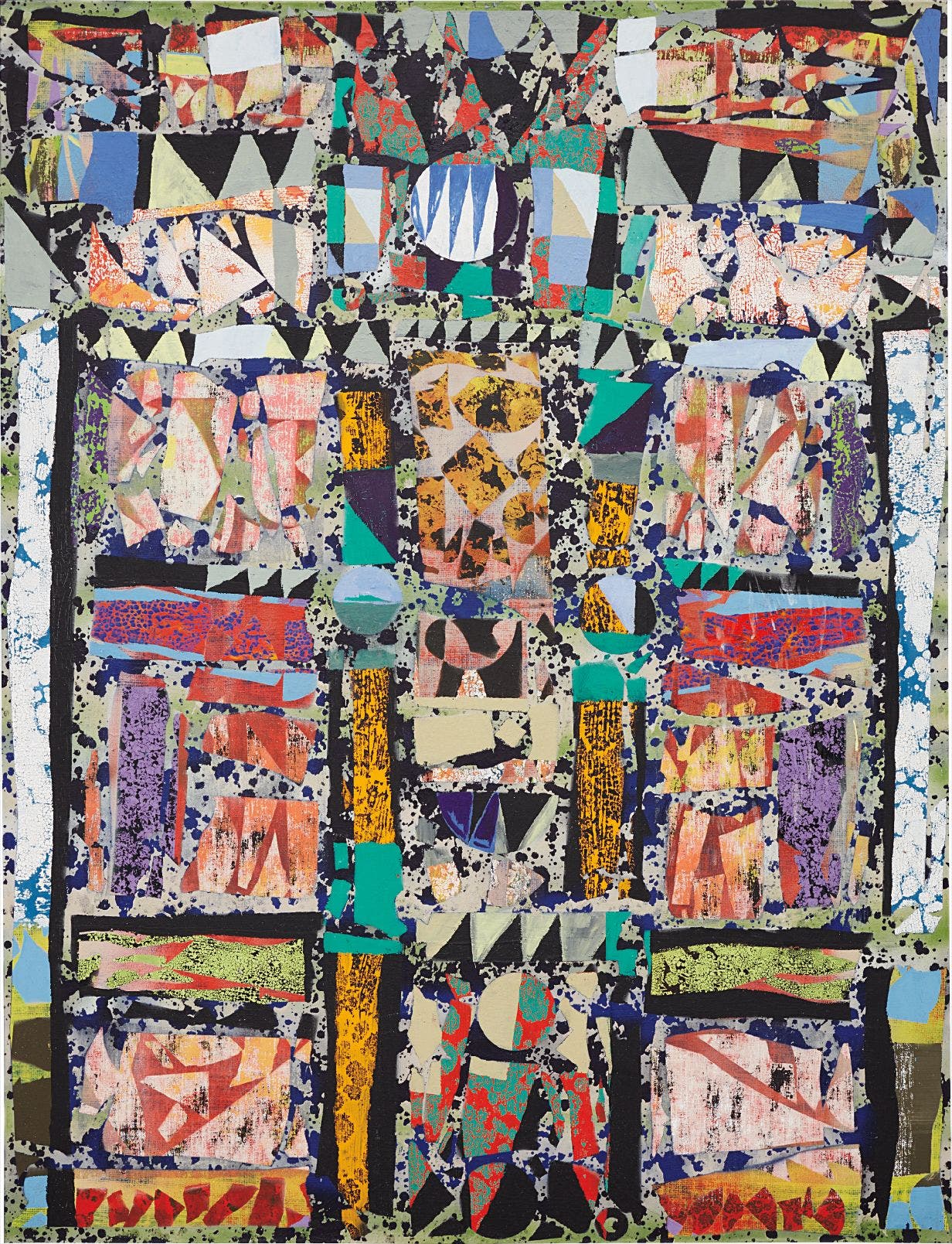 glue emulsion, acrylic, enamel varnish and spraypaint on linen