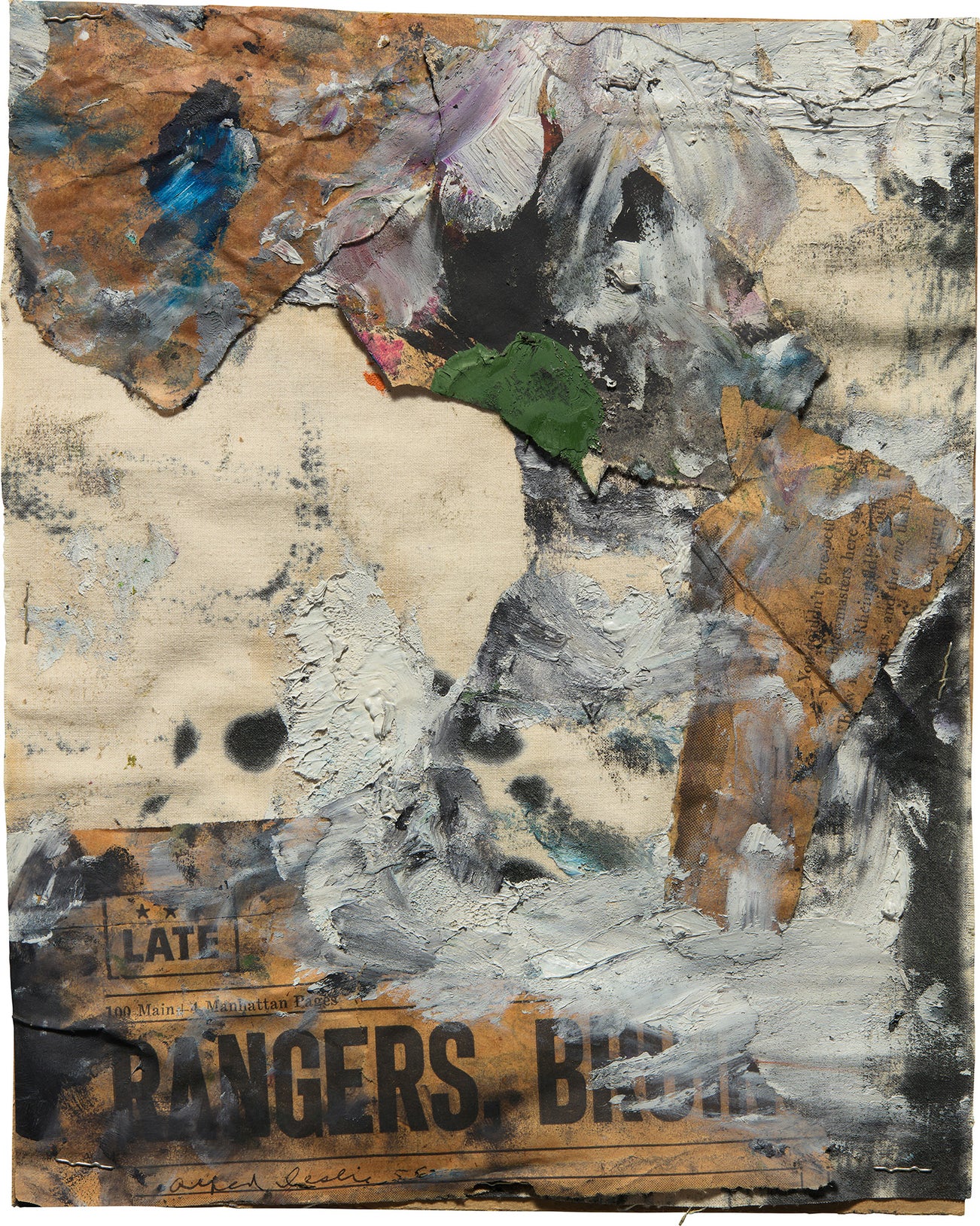 oil, newsprint and linen on board