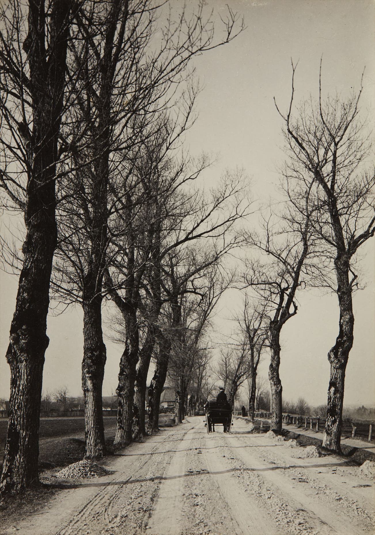 Made early in Stieglitz’s career, November Days was an image that retained importance for the photographer throughout his life. He included it in several significant exhibitions of his work in the late 19th century, including his first solo show at the New York Camera Club in 1899. November Days, like The Terminal of Lot 15, is one of the early images Stieglitz reincorporated into his exhibition repertoire beginning in the 1920s, and the print offered here dates from that time. Rendered as a gelatin silver print, this photograph seems consonant with the landscapes, tree studies, and Equivalents Stieglitz made at Lake George in his later years. This similarity is enhanced by the modern presentation—flush-mounted, and mounted again to larger board—that Stieglitz favored at the time for his exhibition prints. He hung November Days in his 1935 solo exhibition at An American Place, alongside similarly re-evaluated early images and newer work.