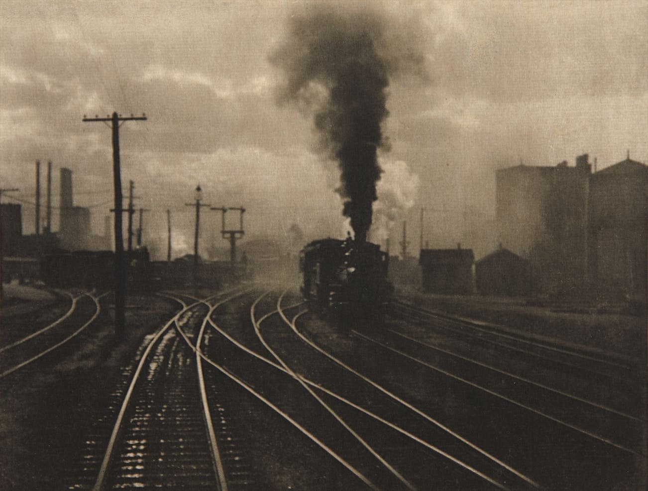 camera captured his ambivalent feelings of this tremendous change. In fact, it was through the lens of a hand-held camera while standing on the back of a train as it pulled into the freight yard of the Long Island City railroad that Stieglitz photographed The Hand of Man.
