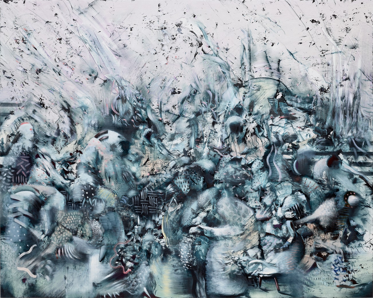Ali Banisadr is an Iranian-American contemporary artist working in New York. Taking influence from the annals of art history as well as from memories of his childhood during the Iran-Iraq War, Banisadr creates harrowing whirlwinds of chaos and color on the surface of his canvases. He frequently describes his work in terms of tone, volume, and temperature; each canvas begins as Banisadr, who has synesthesia, reflects on the sounds and vibrations of his wartime childhood and develops the chaos until he has calmed the composition to a state of intelligibility.