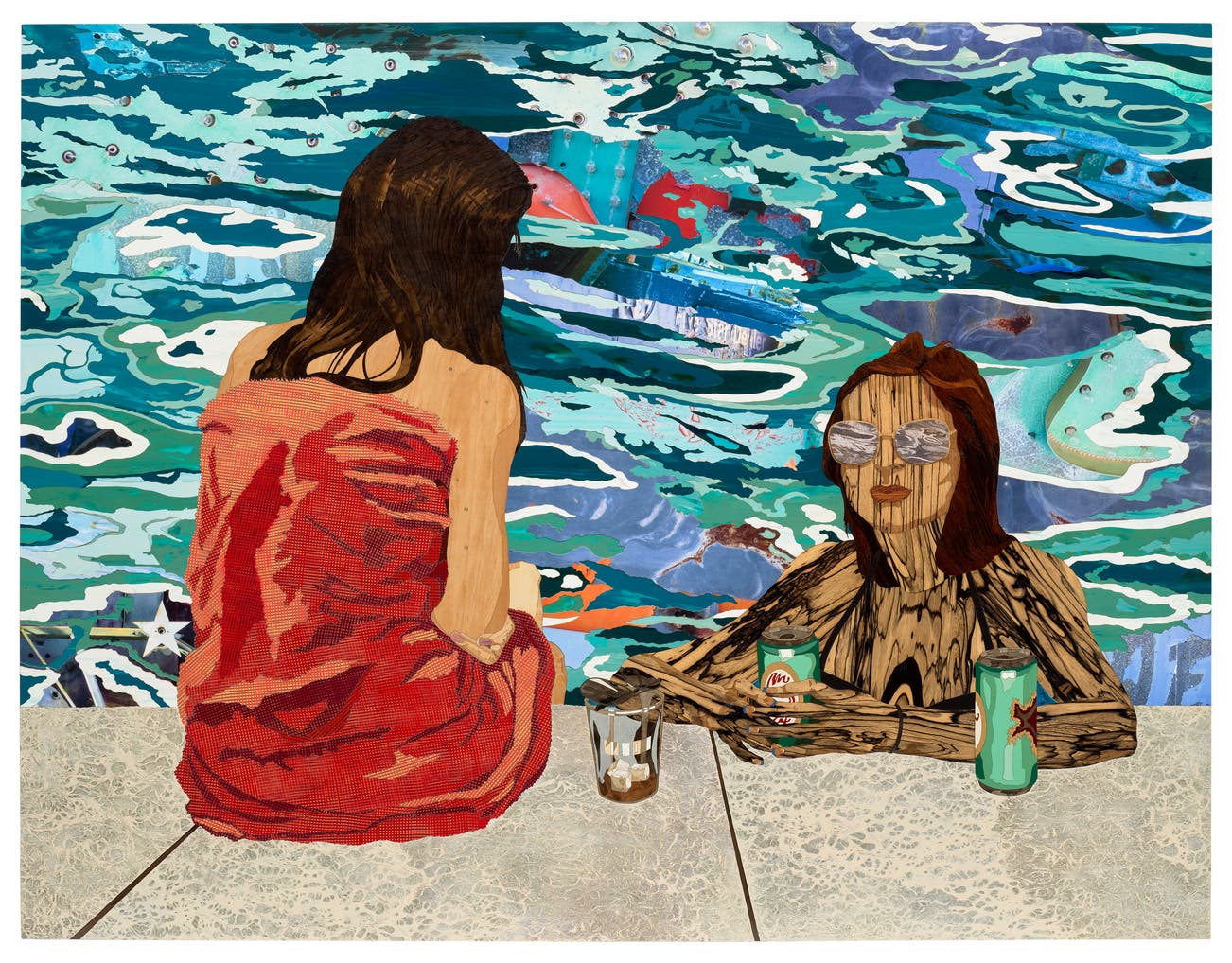 marquetry hybrid, wood veneer, shellac, acrylic and oil on board