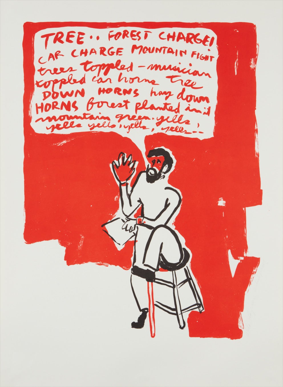 Lithograph in colors, on Rives BFK paper, with full margins.