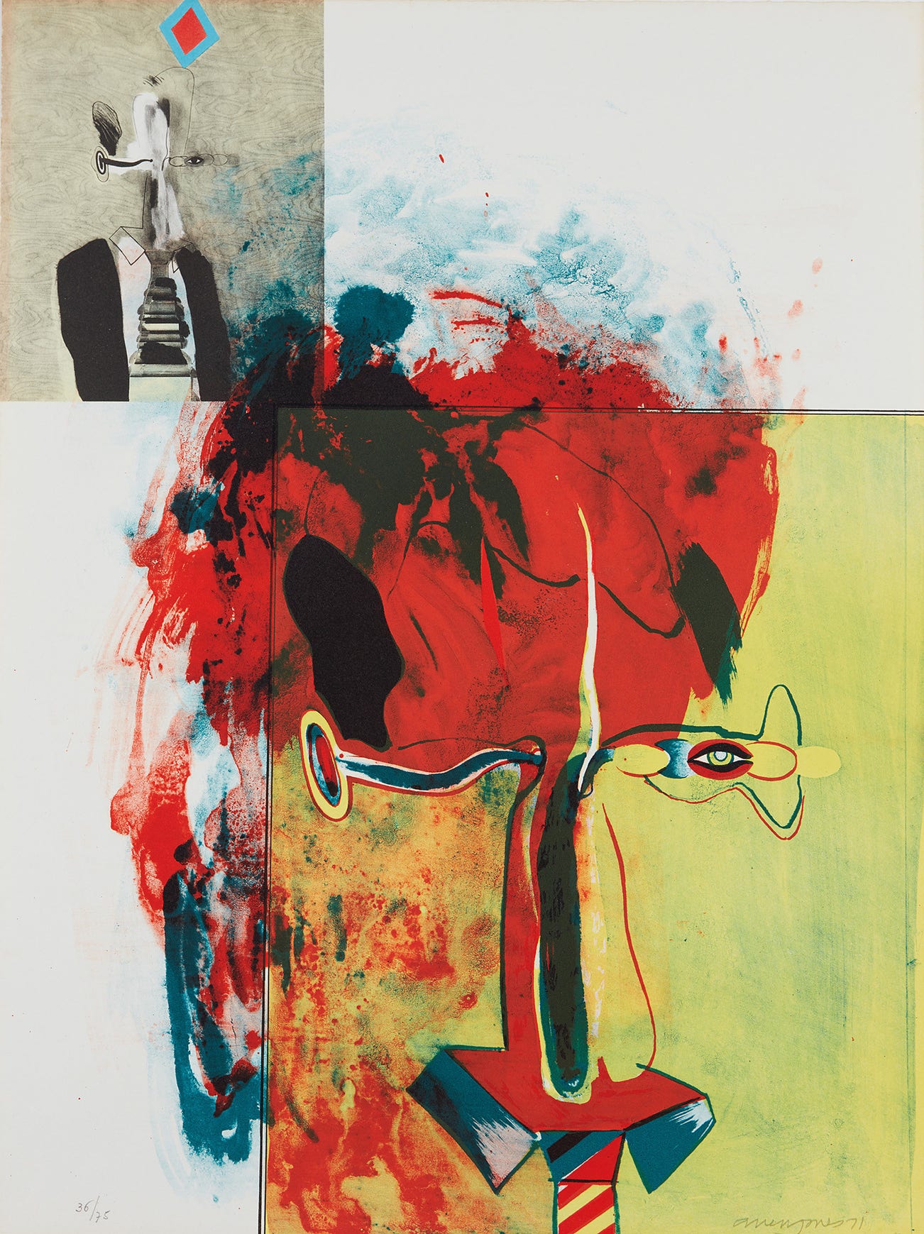 Lithograph in colors, on Rives BFK paper, the full sheet.