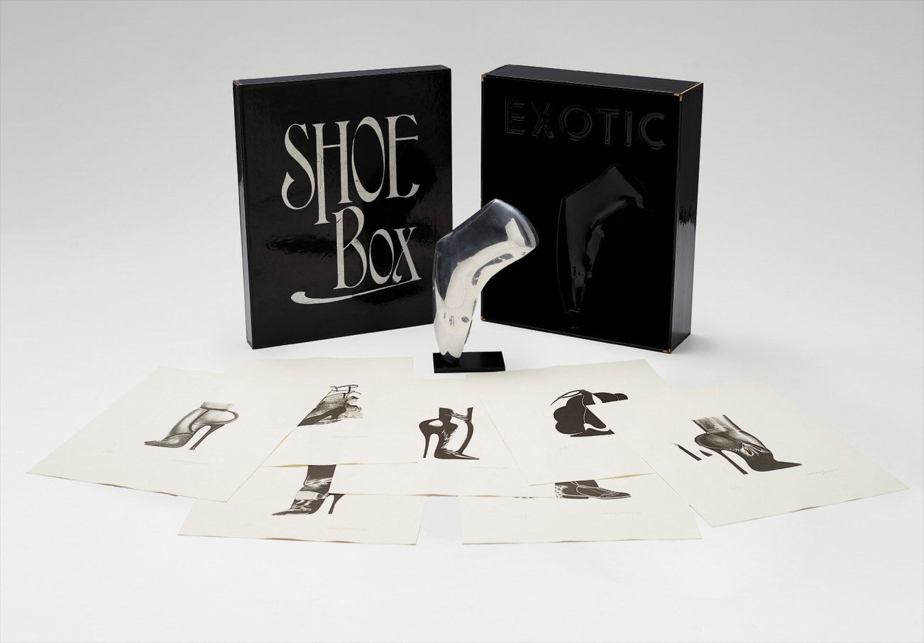 The complete set of eight works, including an aluminium multiple, and seven lithographs, on BFK Rives paper, with full margins, with title page and justification, the sheets loose inside individual plastic wallets (as issued) all contained inside the original black PVC-covered shoe box with a screenprint and embossing in colours inside the lid.