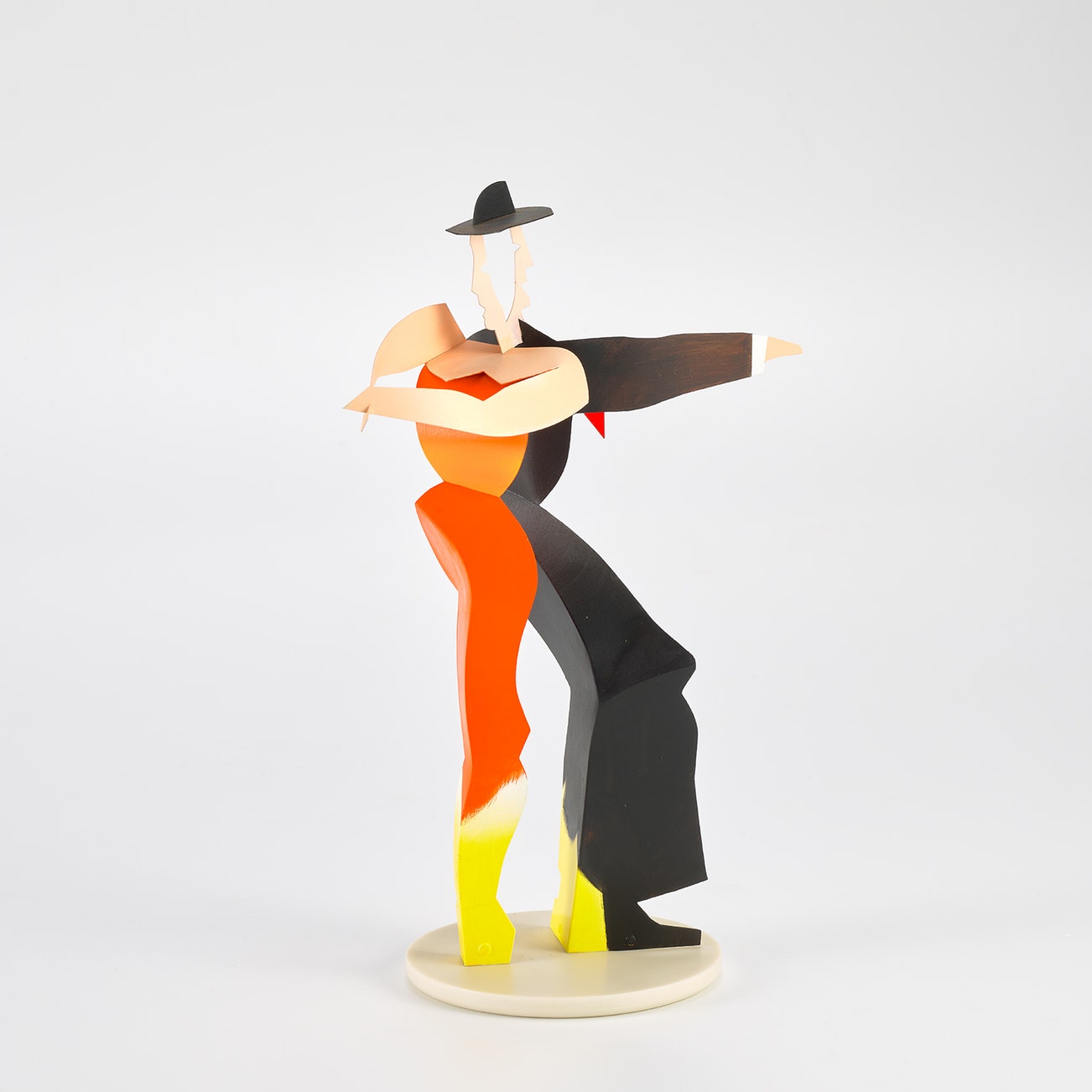 Multiple comprised of etched brass, hand painted in acrylic, with a corian base, contained in the original wooden and Perspex display box.