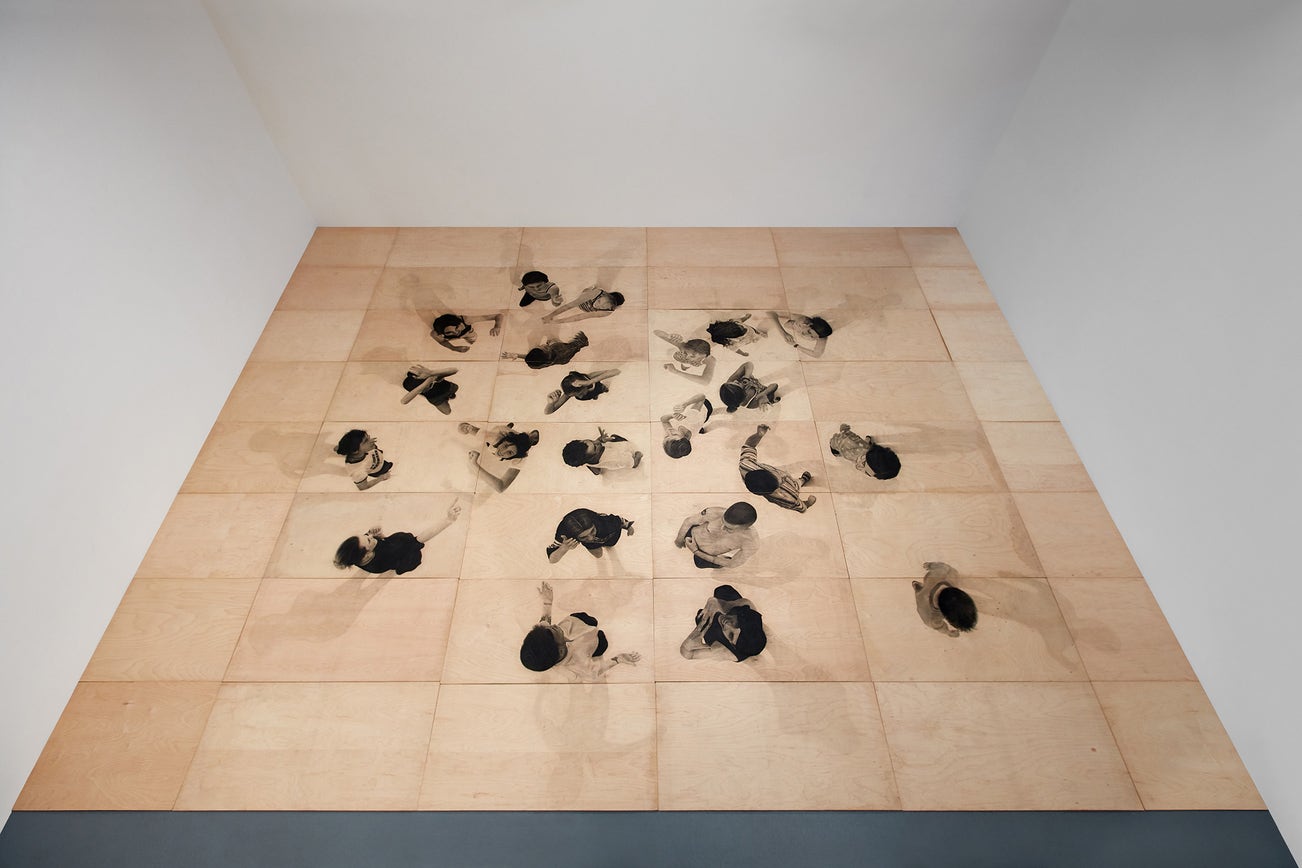 charcoal on wood, in 40 parts