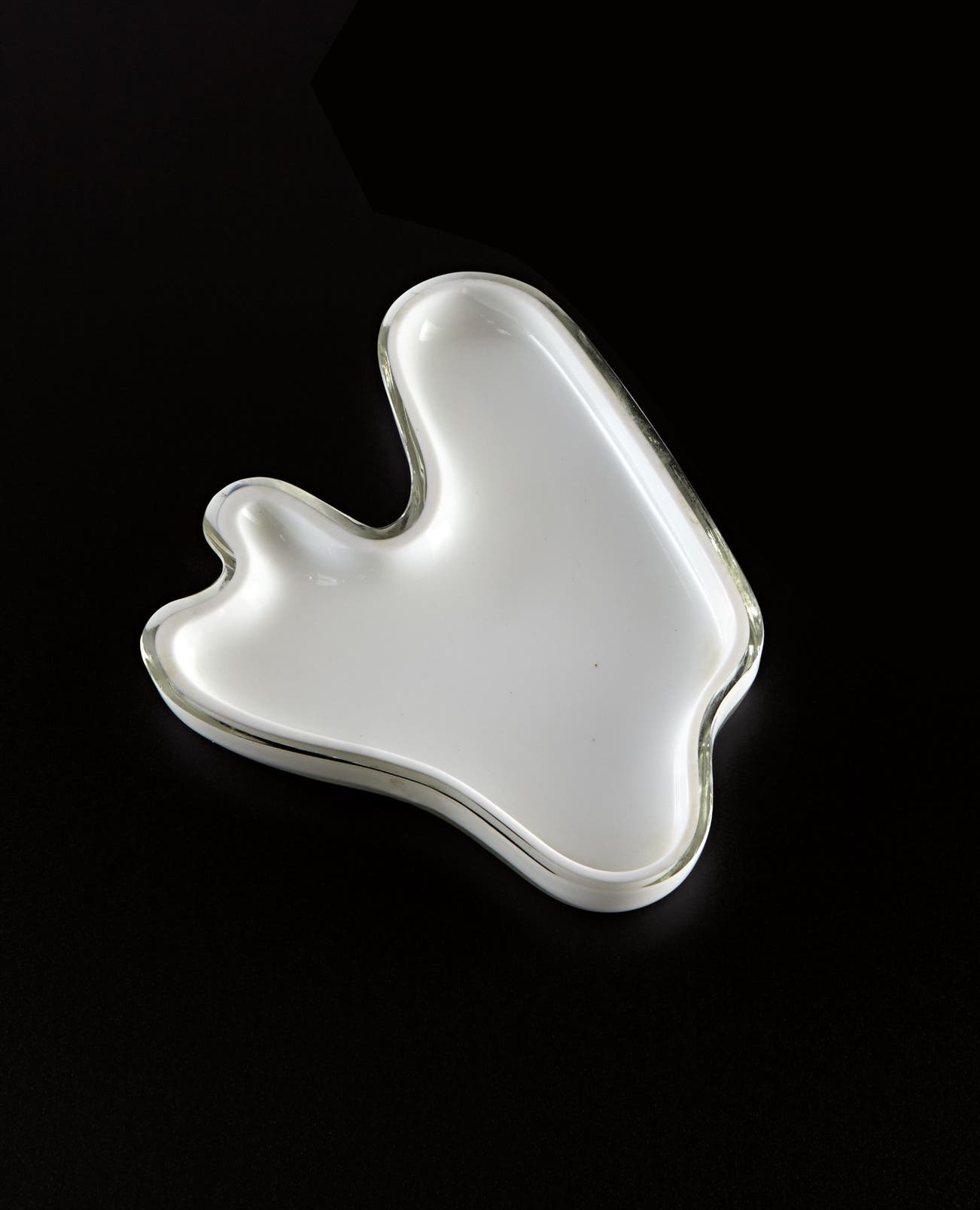 Both model dishes are from the same sketch series “Eskimoerindens skinnbuxa” (The Eskimo Woman’s Leather Breaches), which won first prize in a 1936 design competition organized by Karjula-Iittala Glassworks, Finland. This series was also included in the Finnish Pavilion at the 1937 Exposition Internationale, Paris, and on the Karhula-Iittala Glassworks stand at the Finnish Housing Exhibition in 1939.