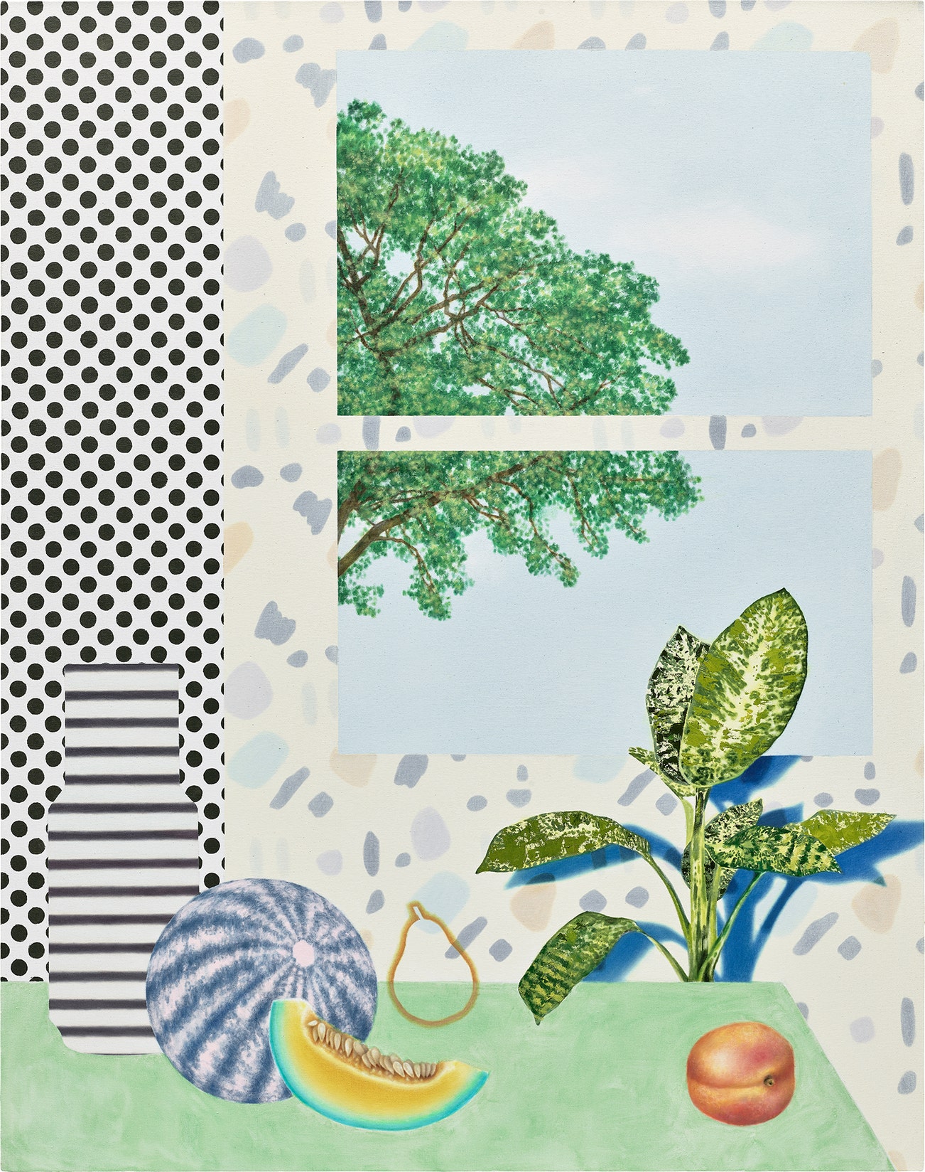 signed, titled and dated "Open Window, Pear Table 2018 Amanda Baldwin" on the overlap
