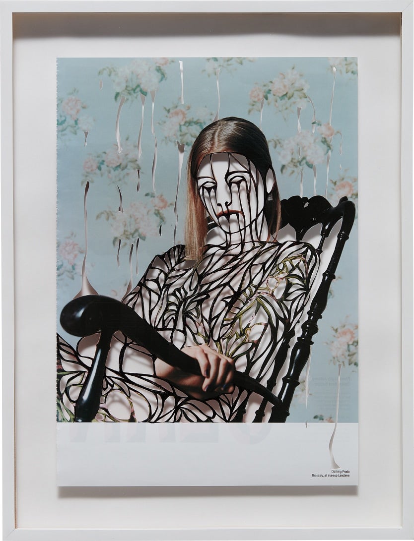 ink on cutout magazine