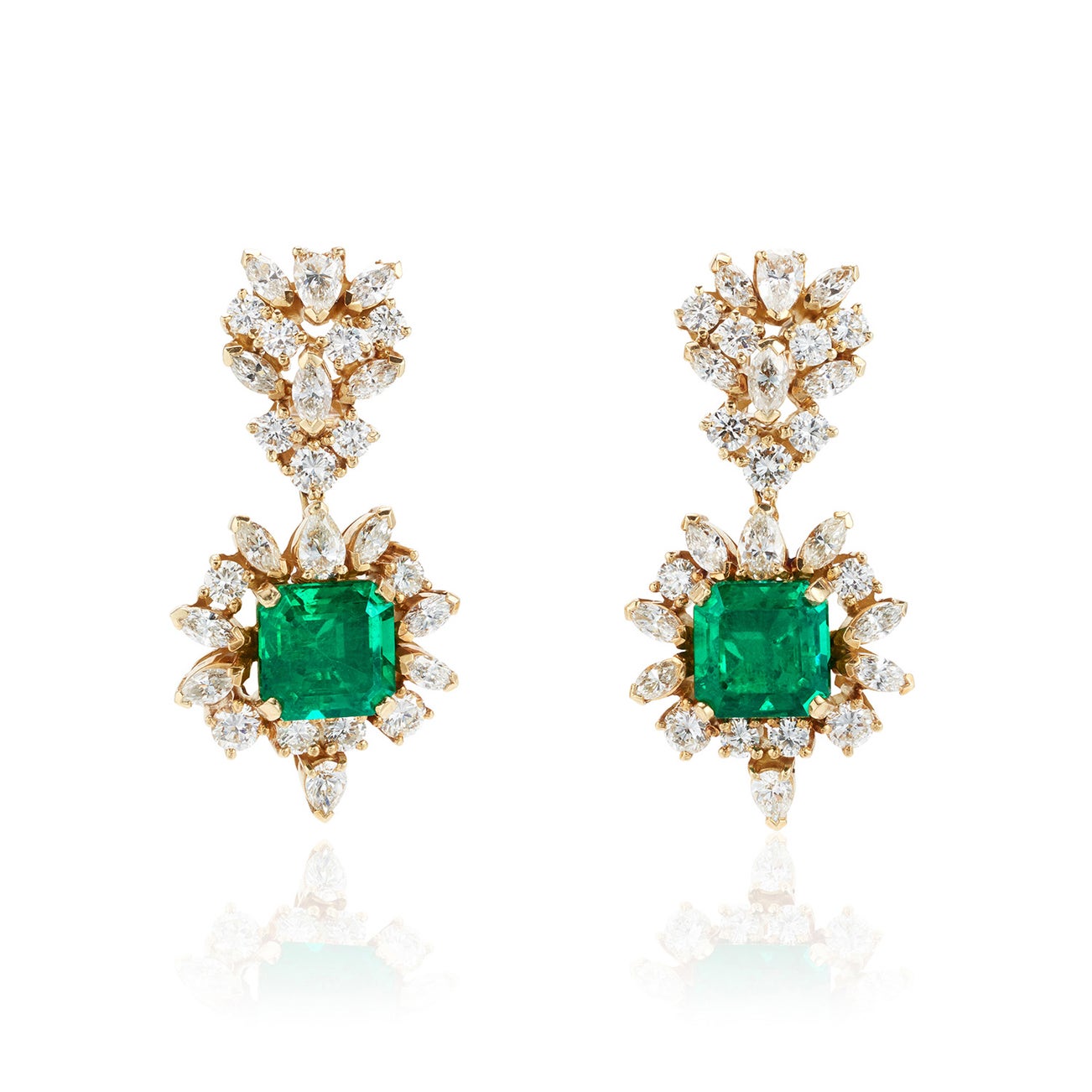 A Pair of Emerald, Diamond, and Gold Earclips