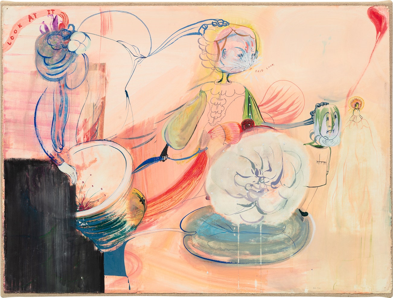 signed with the artist's initials and dated "AS 96" lower right; signed, titled and dated "A. Sillman 97 LOOK AT IT" on the overlap; signed, inscribed and dated "Sillman dwg = 97 mounted = 99" on the stretcher