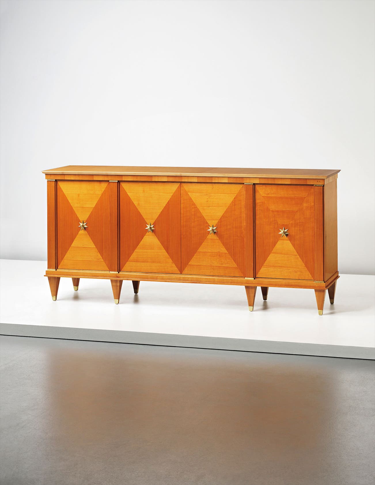 Sycamore-veneered wood, sycamore, brass.