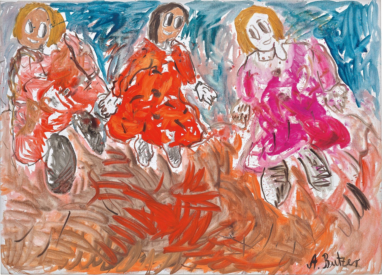 signed 'A. Butzer' lower right; further signed, titled and dated 'A. Butzer '04 (Frau Josef Blösche hat alle ihre Pfannen-kuchen im Hause)' on the reverse