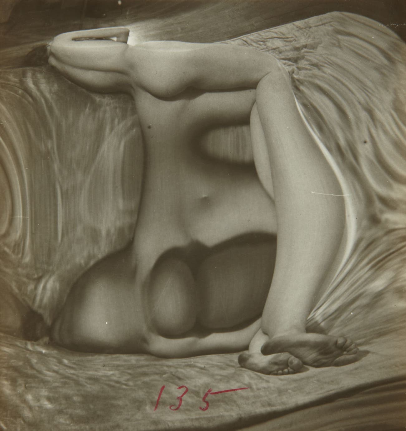 Numbered '135' in red wax pencil on the recto; signed and numbered in pencil on the verso.