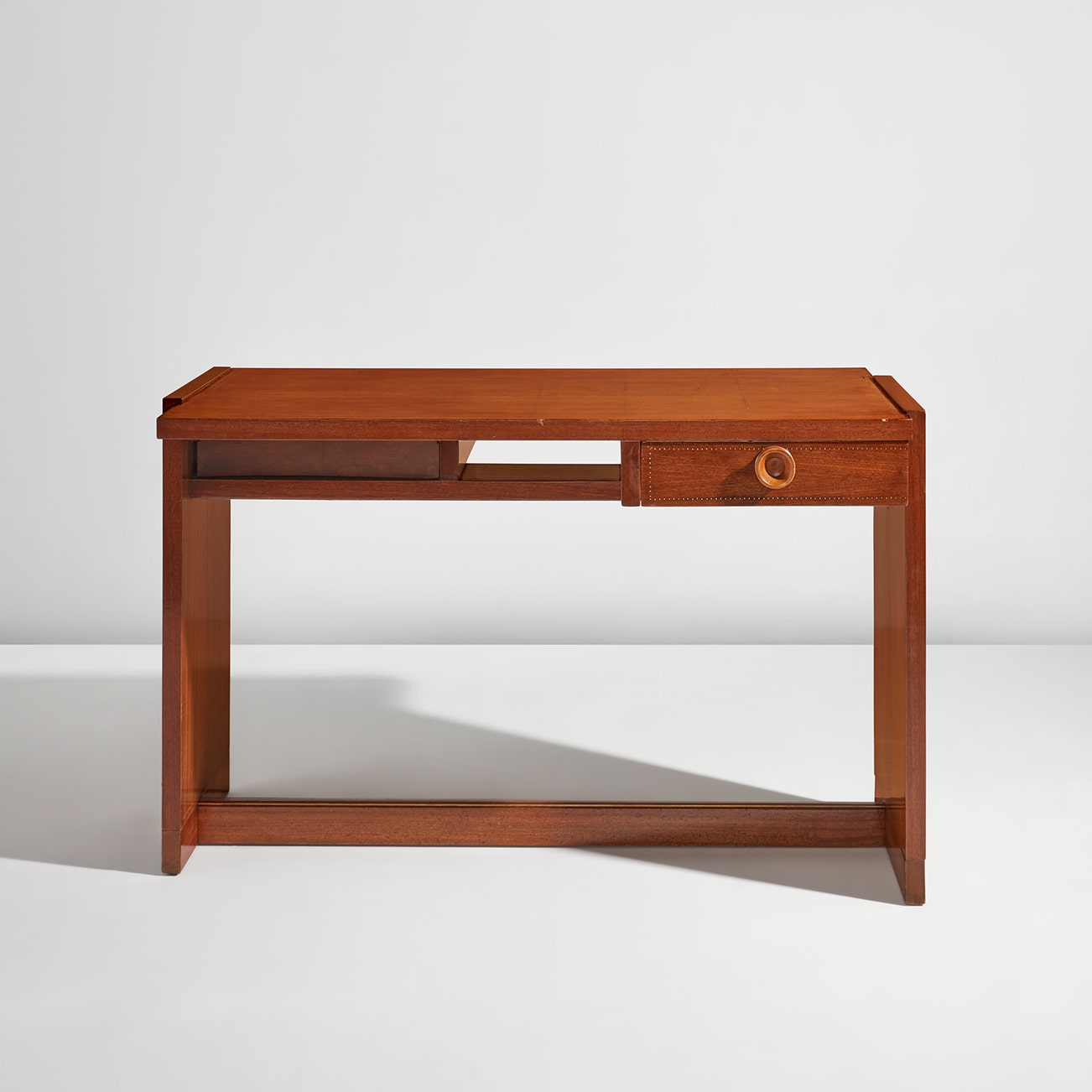 Sapele, sapele-veneered wood, brass.