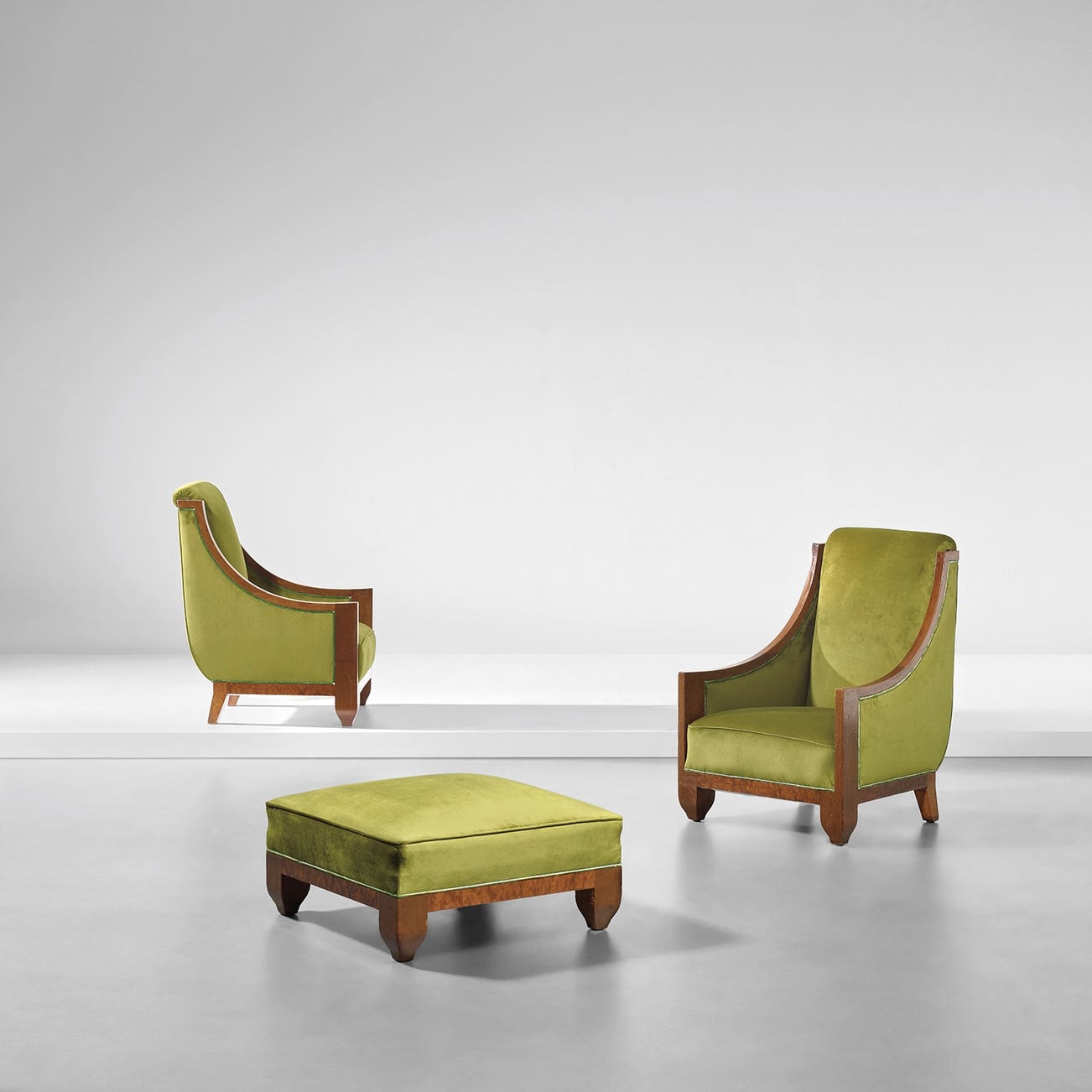 Pair of armchairs and ottoman