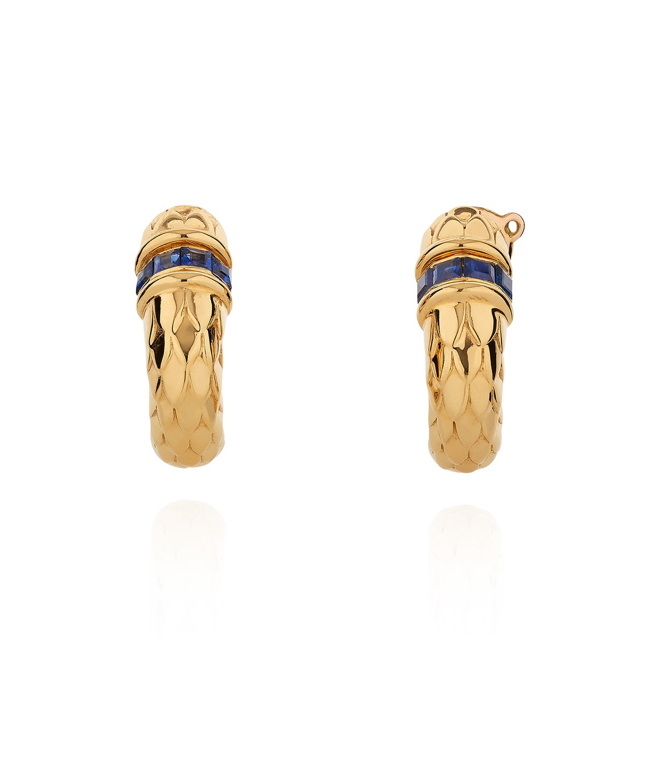 Each set with calibré-cut sapphires, one with French maker's mark for Andre Vassort, assay mark for gold.