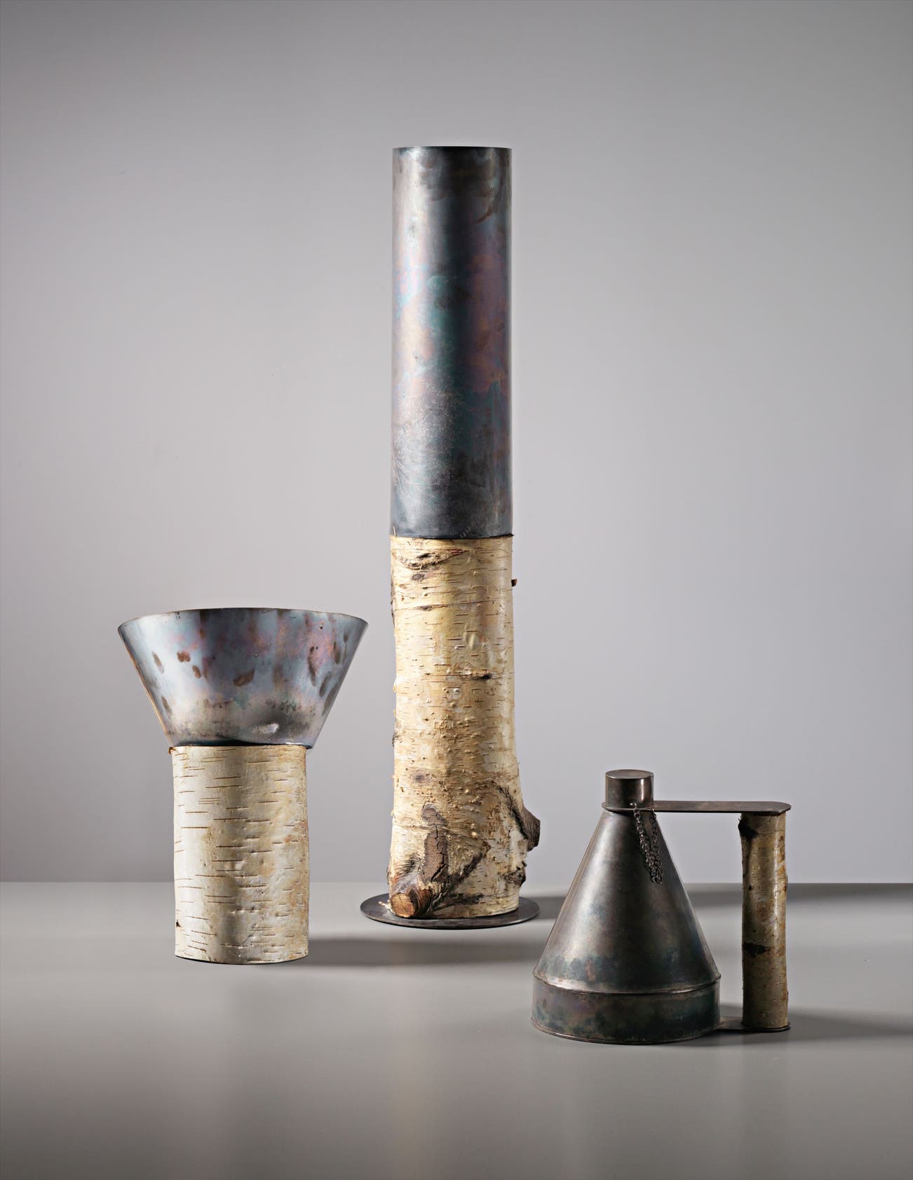 Editioned by Argentaurum, Belgium. Each from the edition of 25. Comprising large vase, vase and carafe. Each marked with purity mark 925 and impressed artist's mark, artist's facsimile signature, ARGENTAURUM, 2 / 25, 6 / 25, and 3 / 25 respectively.