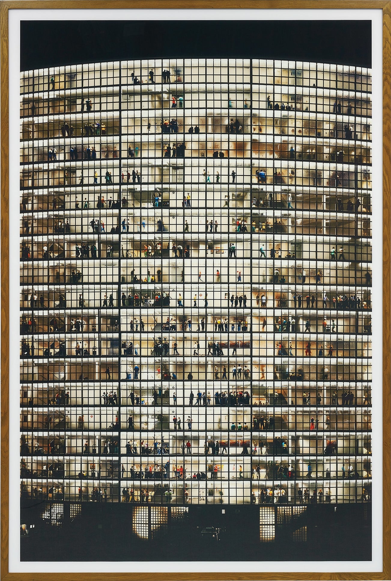 Emblematic of Gursky’s signature ‘poly-ocular perspective’, May Day V comprises various shots of the Westfalenhalle executed at different times and from different angles. ‘You never notice arbitrary details in my work. On a formal level, the countless interrelated micro and macro structures are woven together, determined by an organisational principle’, mused the artist (Andreas Gursky, quoted in Andreas Gursky, exh. cat., Hayward Gallery, London, 2017, p. 5). May Day V amalgamates various fragments of the eighteen-story complex to render Gursky’s ambitiously magnified vision.