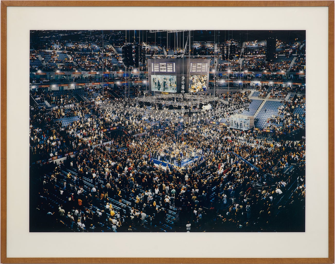 Named after the notorious Ukrainian boxer Wladimir Klitschko, Andreas Gursky’s monumental eponymous work, executed in 1999, captures the moment after the athlete defeated Axel Schulz in an intense match that earned him the 1999 Heavyweight crown. Taken from Gursky’s characteristically elevated vantage point, the crowded sports arena surrounding Klitschko is transformed into a spectacle of colour and drama. Expansive in both its subject and physical size, the photographic composition registers the euphoria of the victorious aftermath whilst retaining a quiet, detached distance from the action. For the artist, the focus of his work ‘is not the decisive moment but the decisive standpoint that is the measure of all artistic things’ (Andreas Gursky, quoted in Andreas Gursky: Architecture, exh. cat., Institut Mathildenhöhe Darmstadt, Mathildenhöhe, 2008, p. 9).