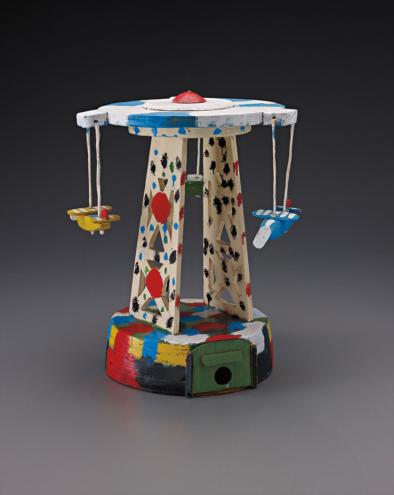 painted wood, string and mousetrap