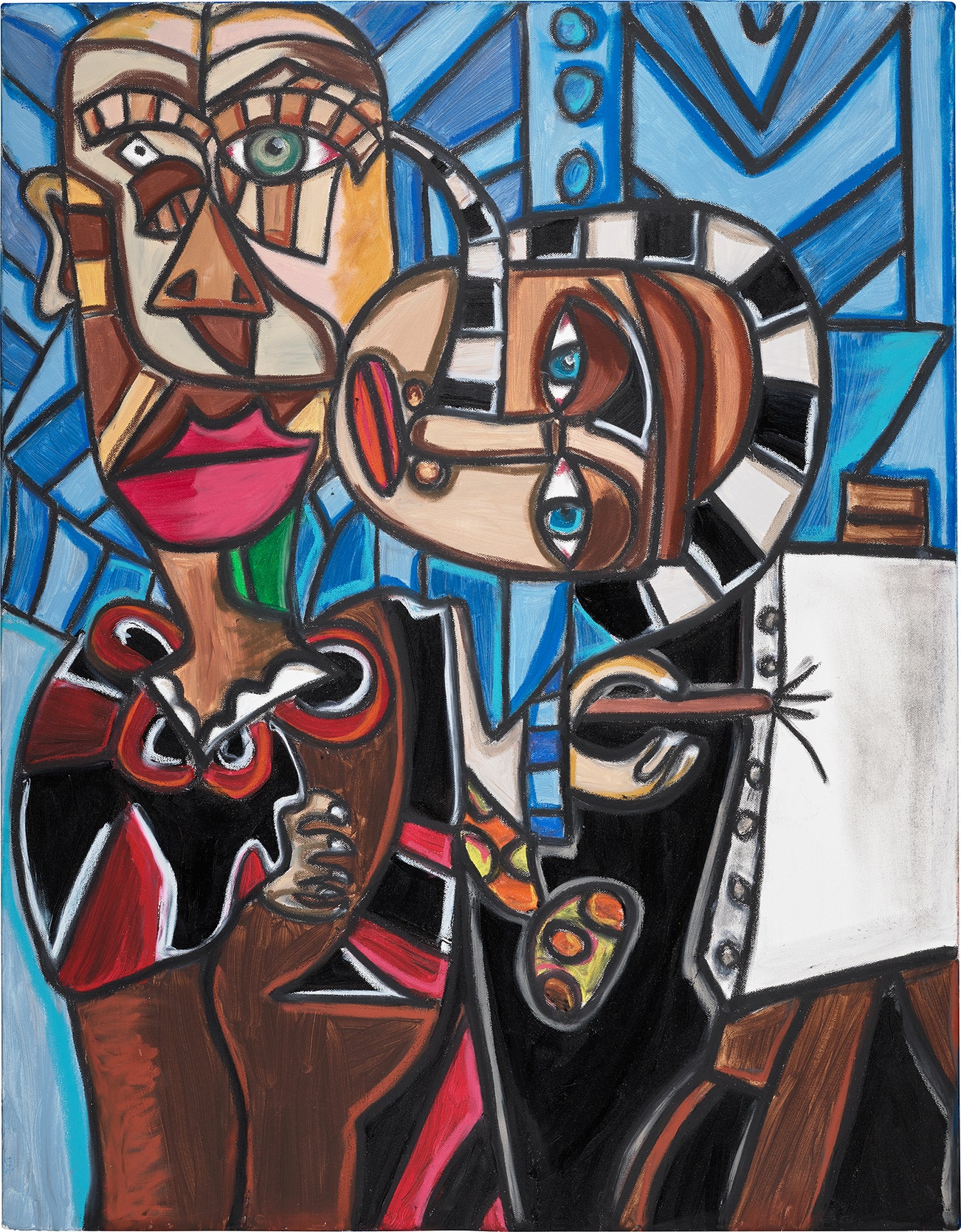 signed, titled and dated "7.2023 Andres V Picasso thinking and Painting of a Woman–Jaqueline" on the reverse
