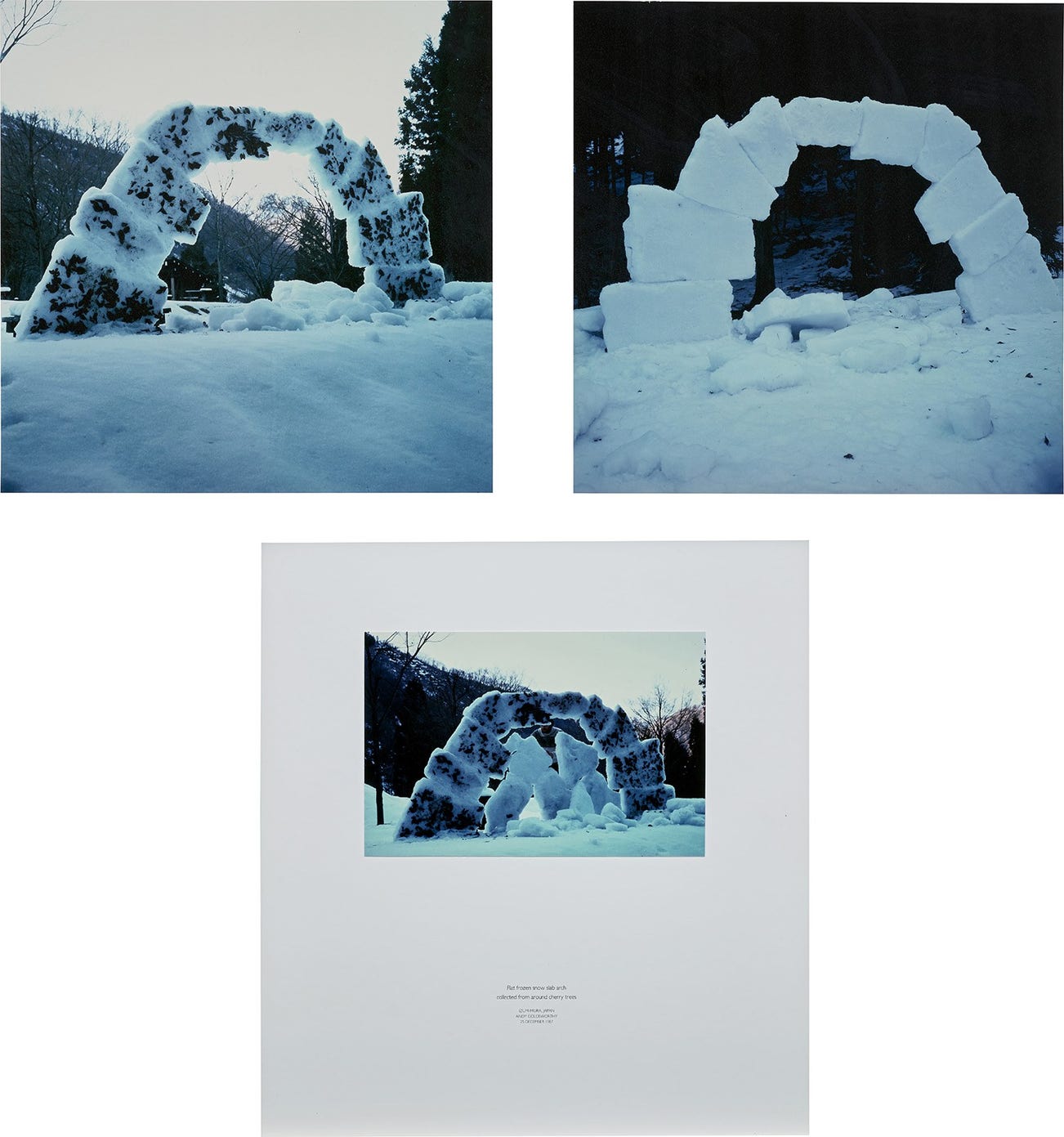 Flat frozen snow slab arch collected from around cherry trees, Izumi-Mura, Japan, 25 December 1987