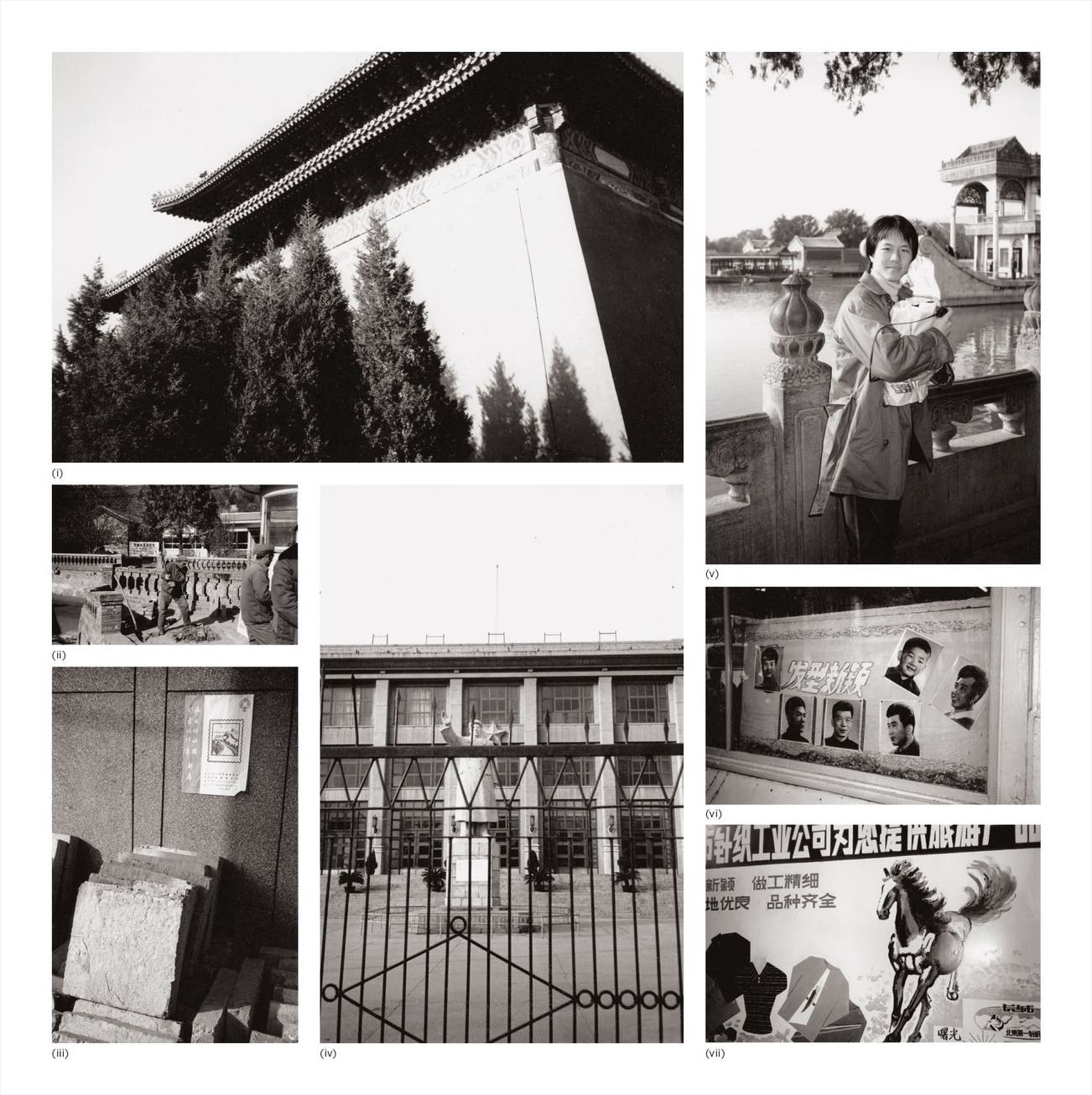 Seven works: (i) Building and Trees; (ii) Workers; (iii) Stone Slabs; (iv) Building and Statue; (v) Alfred Siu; (vi) Window Display; (vii) Chinese Billboard