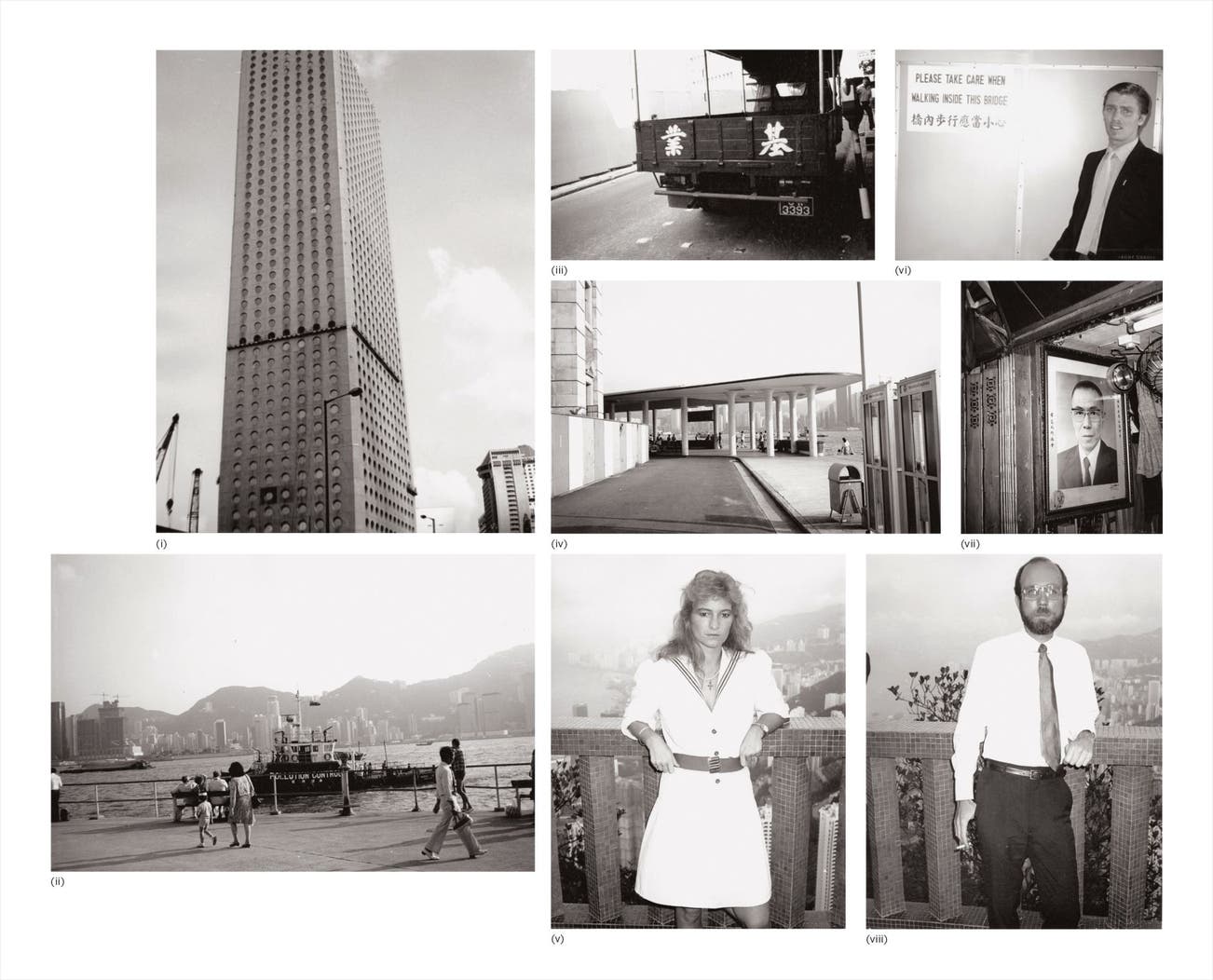 Eight works: (i) Hong Kong Buildings; (ii) Hong Kong Harbour; (iii) Hong Kong Street (Truck); (iv) Hong Kong Harbour; (v) Natasha Grenfell; (vi) Christopher Makos; (vii) Picture of a Man; (viii) Patrick Cooney