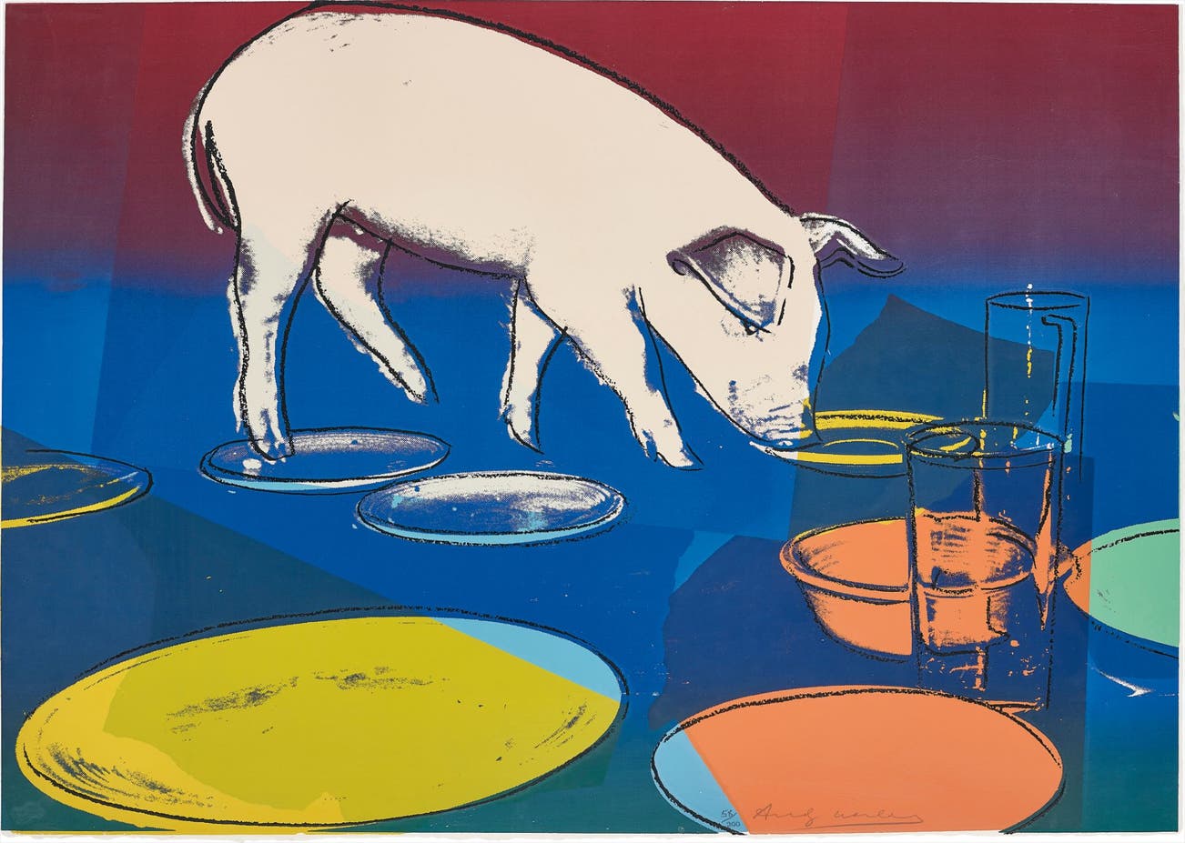 American | B. 1928 D. 1987Andy Warhol was the leading exponent of the Pop Art movement in the U.S. in the 1960s. Following an early career as a commercial illustrator, Warhol achieved fame with his revolutionary series of silkscreened prints and paintings of familiar objects, such as Campbell's soup tins, and celebrities, such as Marilyn Monroe. Obsessed with popular culture, celebrity and advertising, Warhol created his slick, seemingly mass-produced images of everyday subject matter from his famed Factory studio in New York City. His use of mechanical methods of reproduction, notably the commercial technique of silk screening, wholly revolutionized art-making.