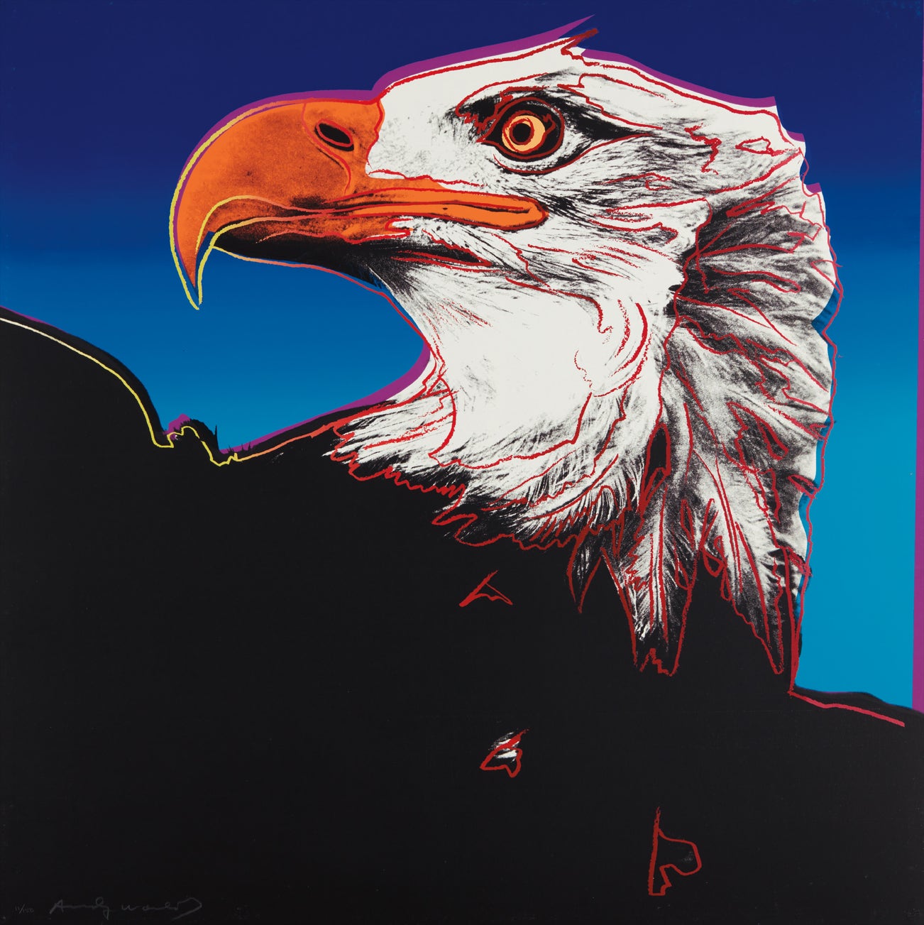 American | B. 1928 D. 1987Andy Warhol was the leading exponent of the Pop Art movement in the U.S. in the 1960s. Following an early career as a commercial illustrator, Warhol achieved fame with his revolutionary series of silkscreened prints and paintings of familiar objects, such as Campbell's soup tins, and celebrities, such as Marilyn Monroe. Obsessed with popular culture, celebrity and advertising, Warhol created his slick, seemingly mass-produced images of everyday subject matter from his famed Factory studio in New York City. His use of mechanical methods of reproduction, notably the commercial technique of silk screening, wholly revolutionized art-making.