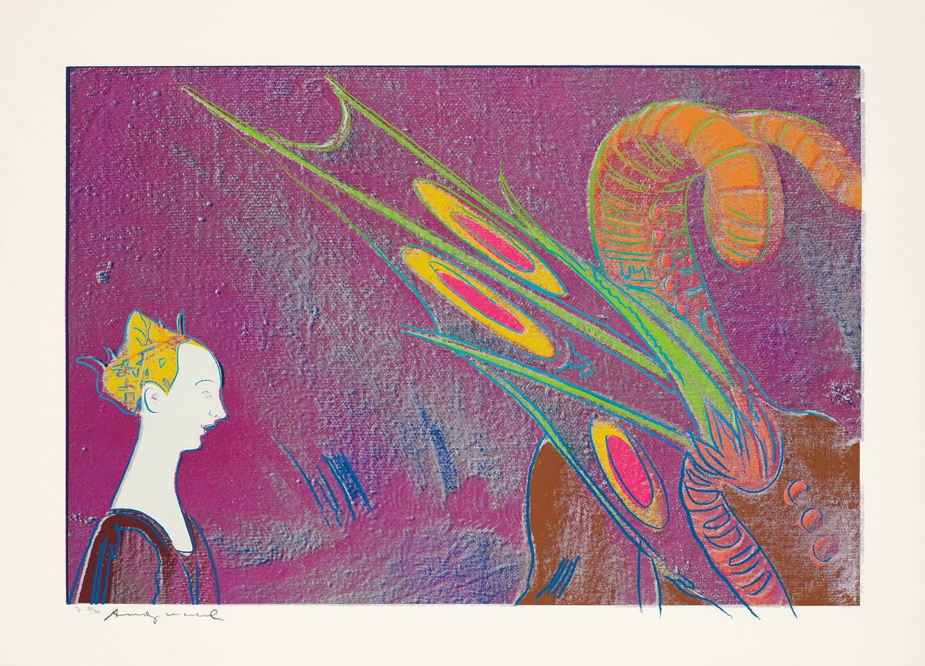 American | B. 1928 D. 1987Andy Warhol was the leading exponent of the Pop Art movement in the U.S. in the 1960s. Following an early career as a commercial illustrator, Warhol achieved fame with his revolutionary series of silkscreened prints and paintings of familiar objects, such as Campbell's soup tins, and celebrities, such as Marilyn Monroe. Obsessed with popular culture, celebrity and advertising, Warhol created his slick, seemingly mass-produced images of everyday subject matter from his famed Factory studio in New York City. His use of mechanical methods of reproduction, notably the commercial technique of silk screening, wholly revolutionized art-making.