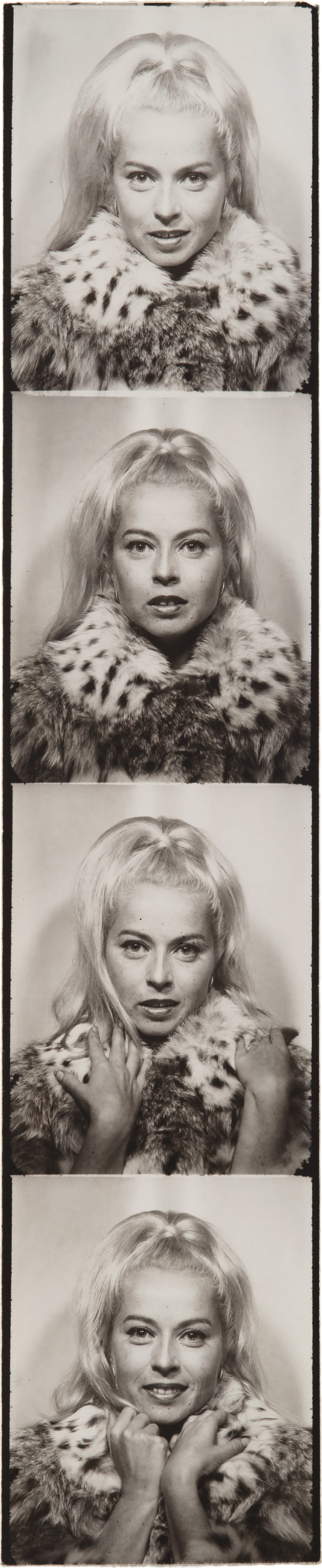Warhol’s process for creating his large-scale canvases at the time was to start with a photobooth portrait. Warhol and Solomon met at an arcade on 47th Street and Broadway to lay the groundwork for their project. Solomon noted that Warhol was very particular about which booth they used: ‘He did pick precisely the photobooth, and he explained to me that he wanted dark and light to be quite clear.’ Once the ideal booth had been selected, Warhol let Solomon alone to perform for the camera as she saw fit. Solomon had studied with legendary acting teacher Lee Strasberg and she used this training to summon a vast array of expressions, poses, and characters for the mechanically operated camera which took four exposures per strip. The final product, an entire inventory of roles that Solomon inhabited with vigor and creativity, was handed over to Warhol to select the image he would use for the final canvas.