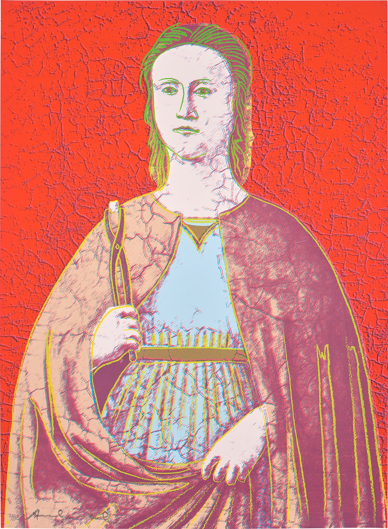 American | B. 1928 D. 1987Andy Warhol was the leading exponent of the Pop Art movement in the U.S. in the 1960s. Following an early career as a commercial illustrator, Warhol achieved fame with his revolutionary series of silkscreened prints and paintings of familiar objects, such as Campbell's soup tins, and celebrities, such as Marilyn Monroe. Obsessed with popular culture, celebrity and advertising, Warhol created his slick, seemingly mass-produced images of everyday subject matter from his famed Factory studio in New York City. His use of mechanical methods of reproduction, notably the commercial technique of silk screening, wholly revolutionized art-making.