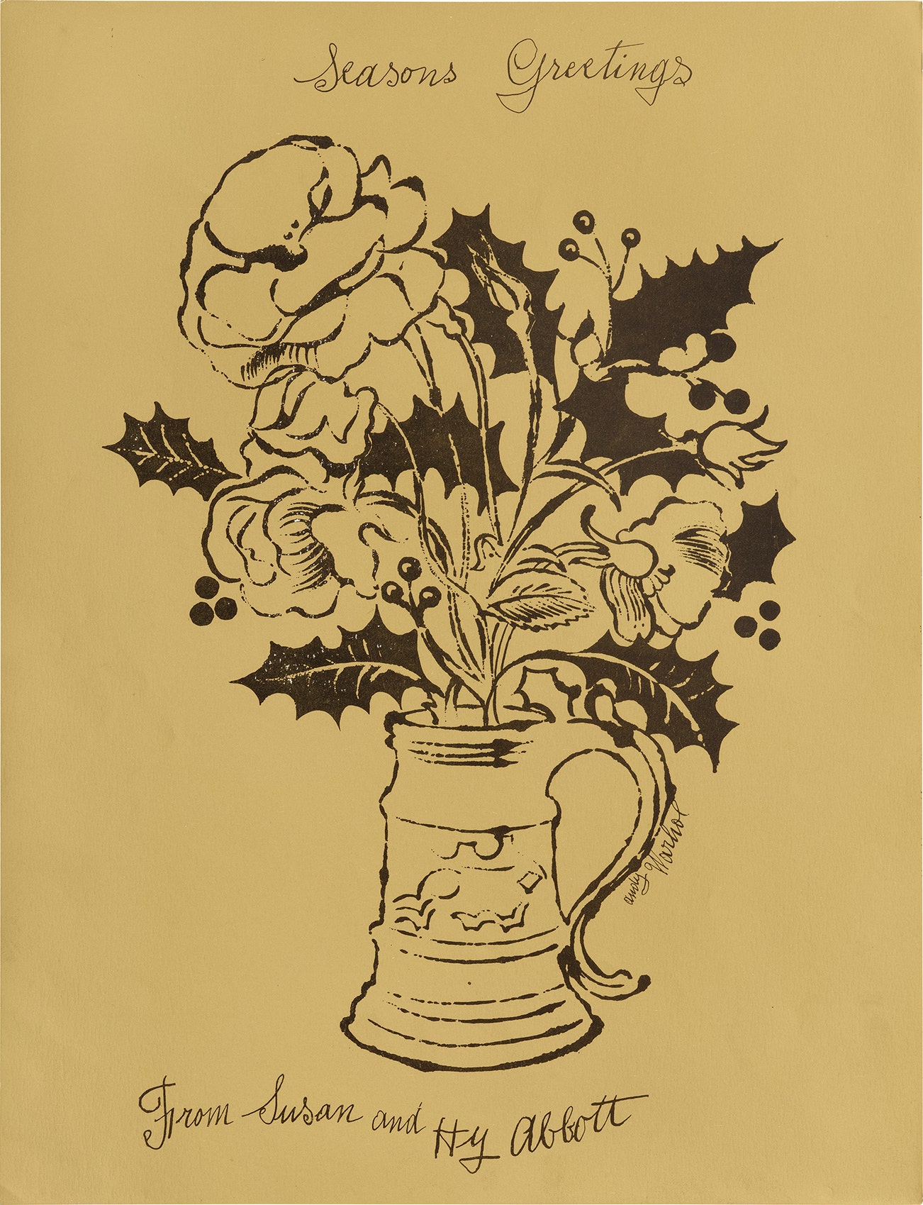 Untitled (Flowers and Holly – Christmas Card)
